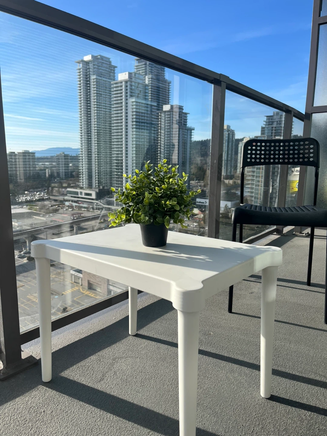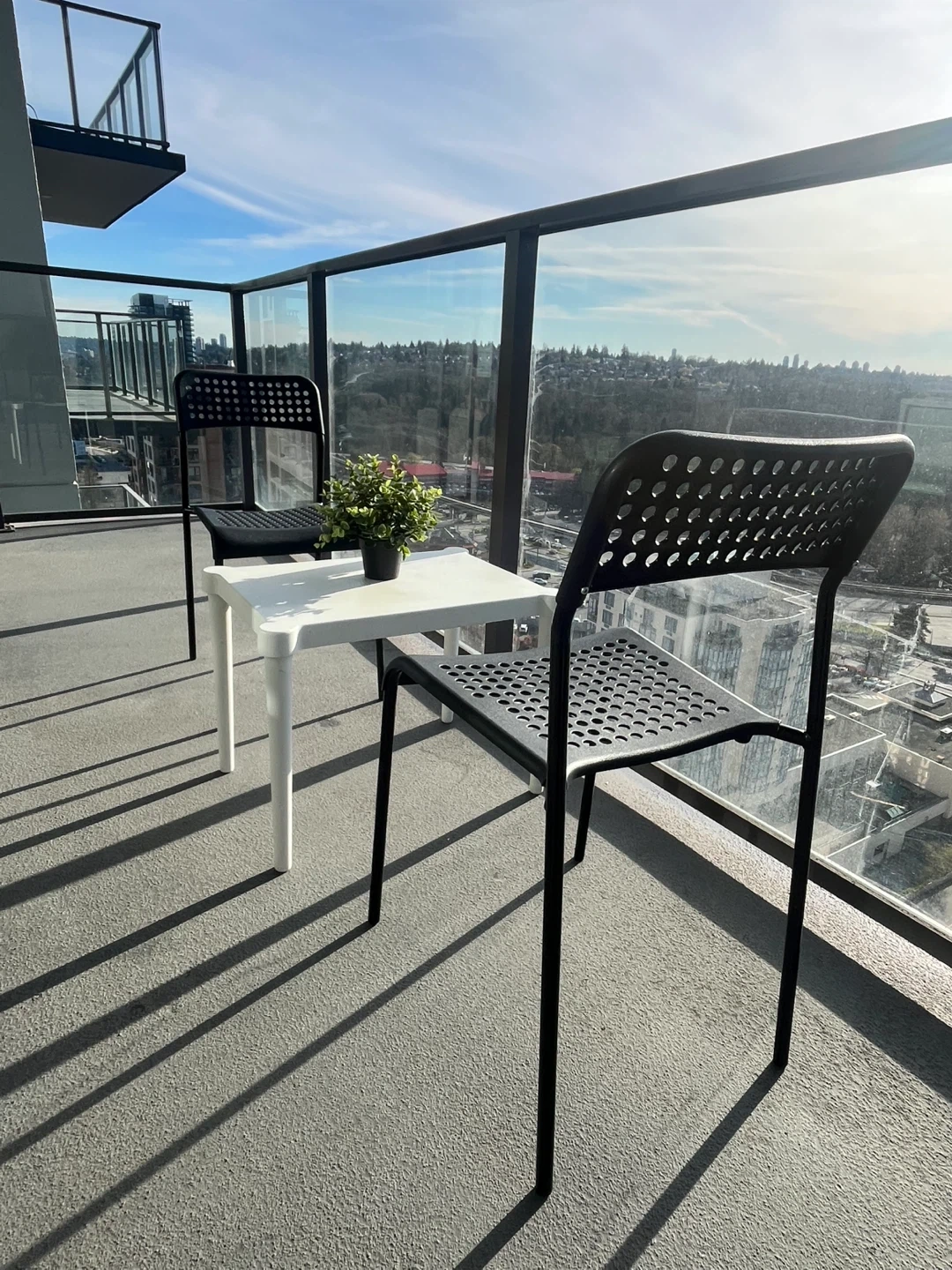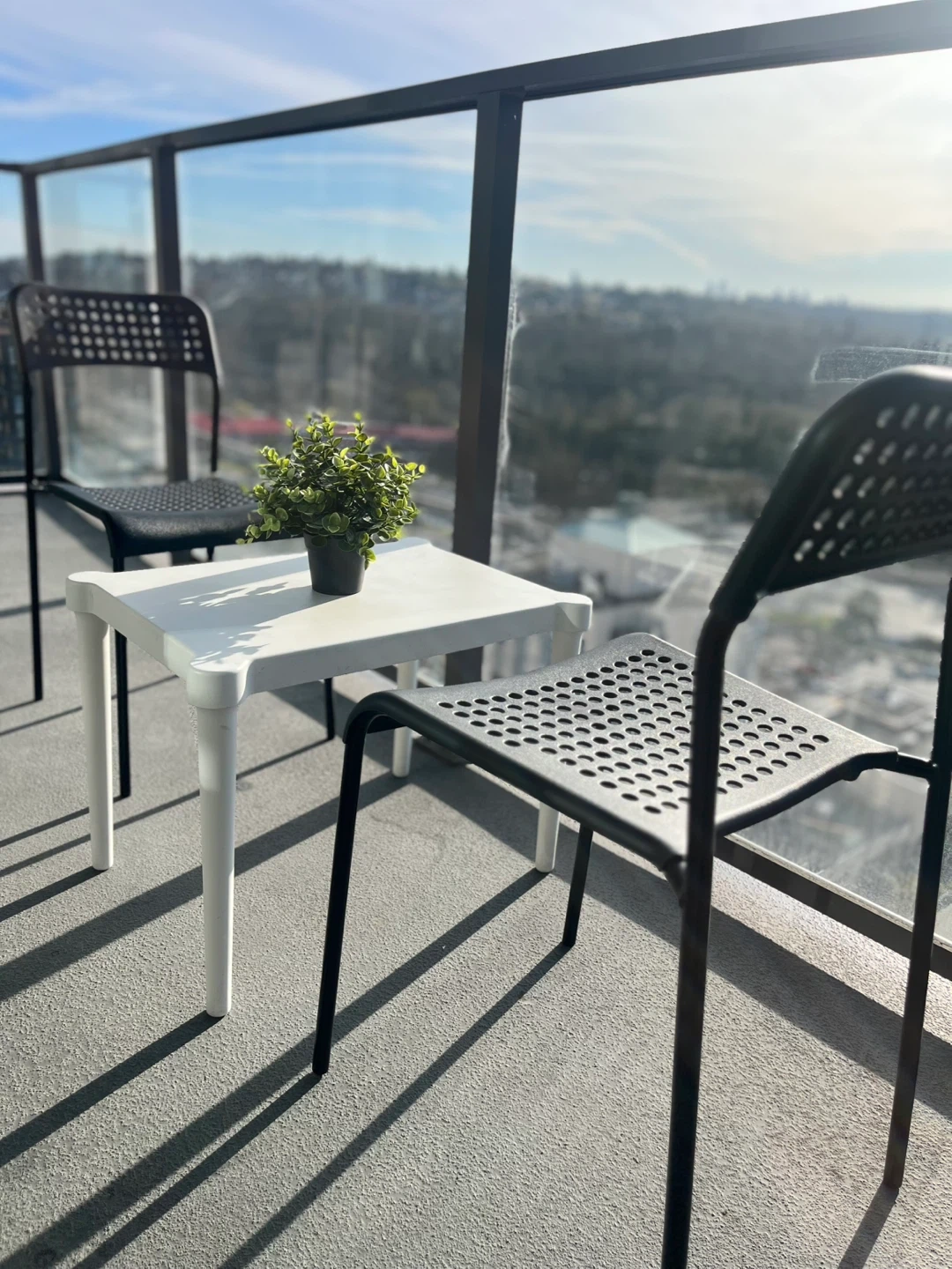 White Side Table and 2 Black Chairs Set