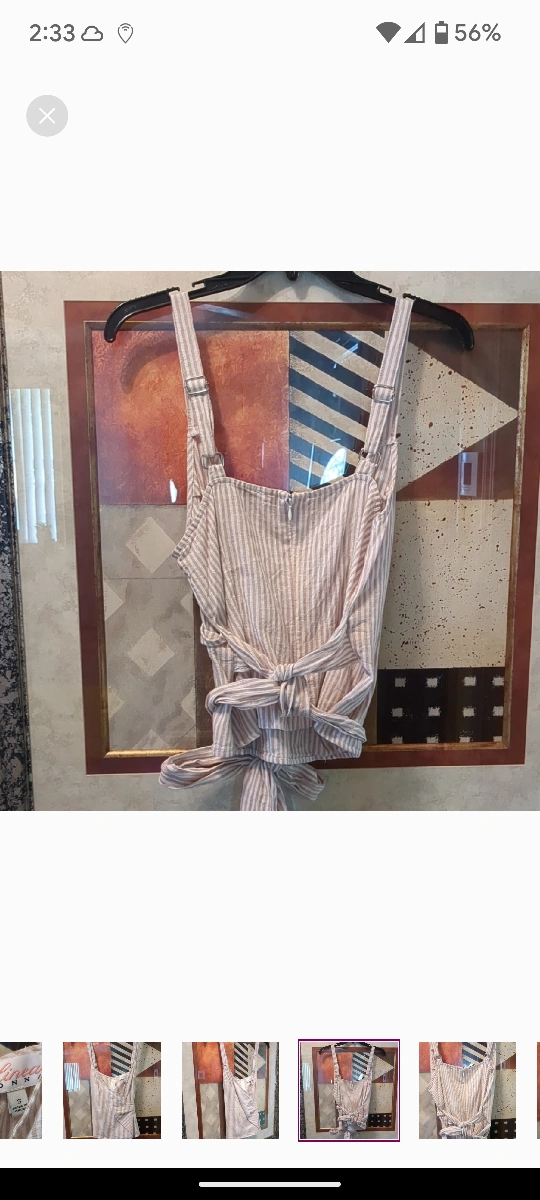 Elevate your casual wardrobe with this chic cream and tan blouse tank with tie waist. Back zipper & adjustable straps. Perfect for any occasion.