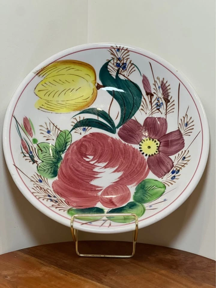 Vtg Hand-Painted Nove Rose Tulip Italian Faience Serving Bowl