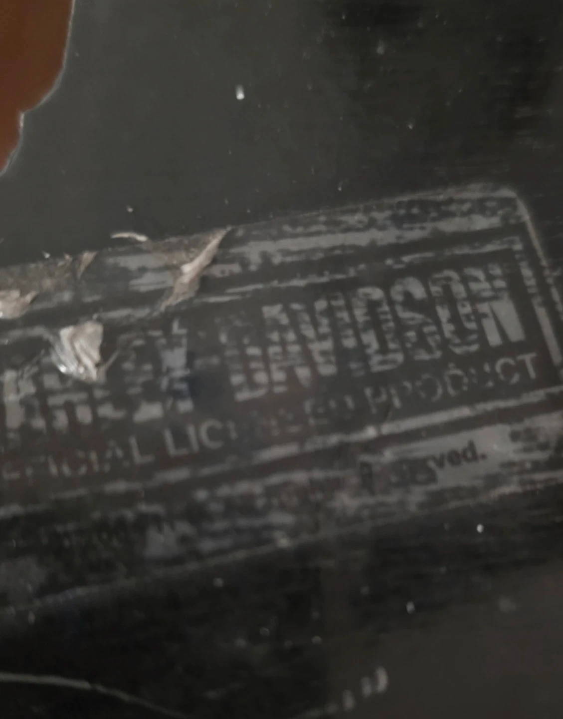 This is an official licensed Harley-Davidson "Wings" emblem. It appears to be made of metal with a silver and black finish. This emblem would be a great addition for any Harley enthusiast!