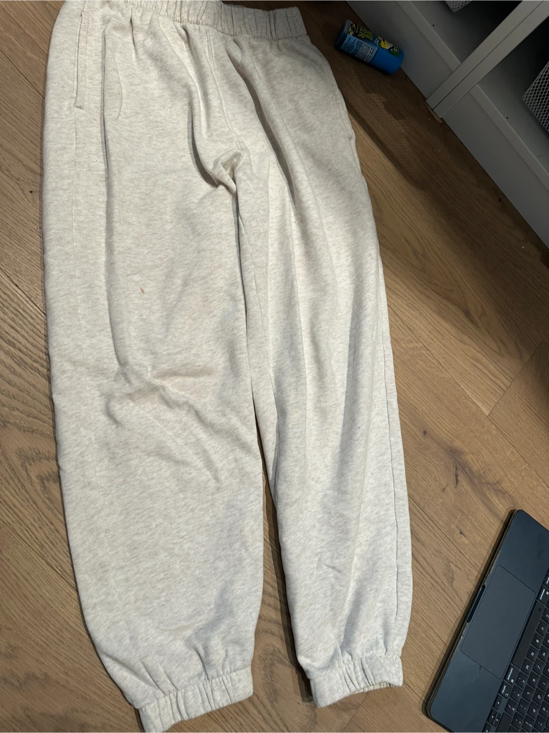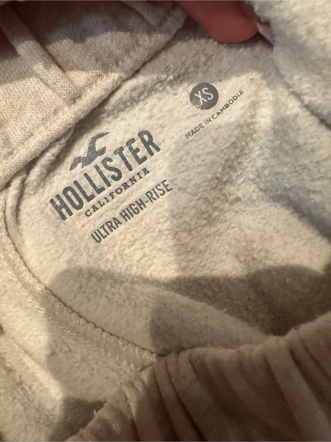 Hollister sweatpants in size XS. With a cinch hem and are cream coloured. They are in great condition and have been barely worn. Also are very stretchy size in flexible.