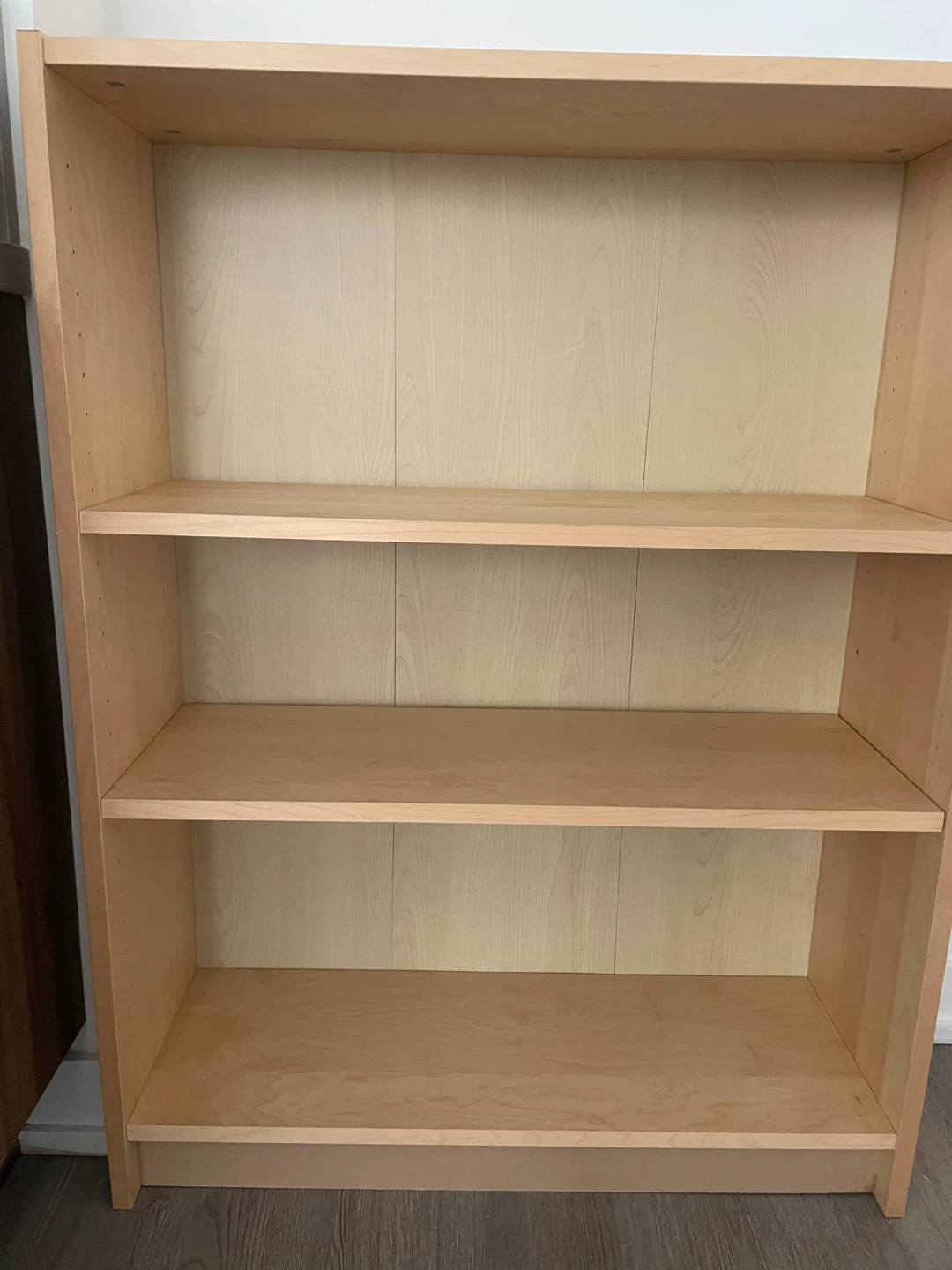 This is a simple, three-shelf bookshelf. It's perfect for storing books or displaying decor.