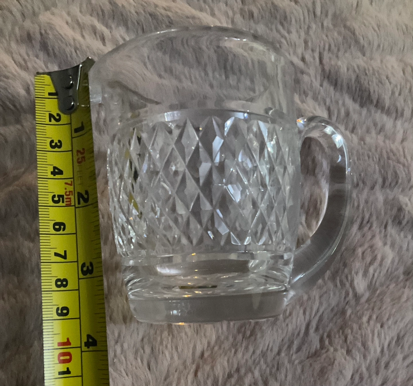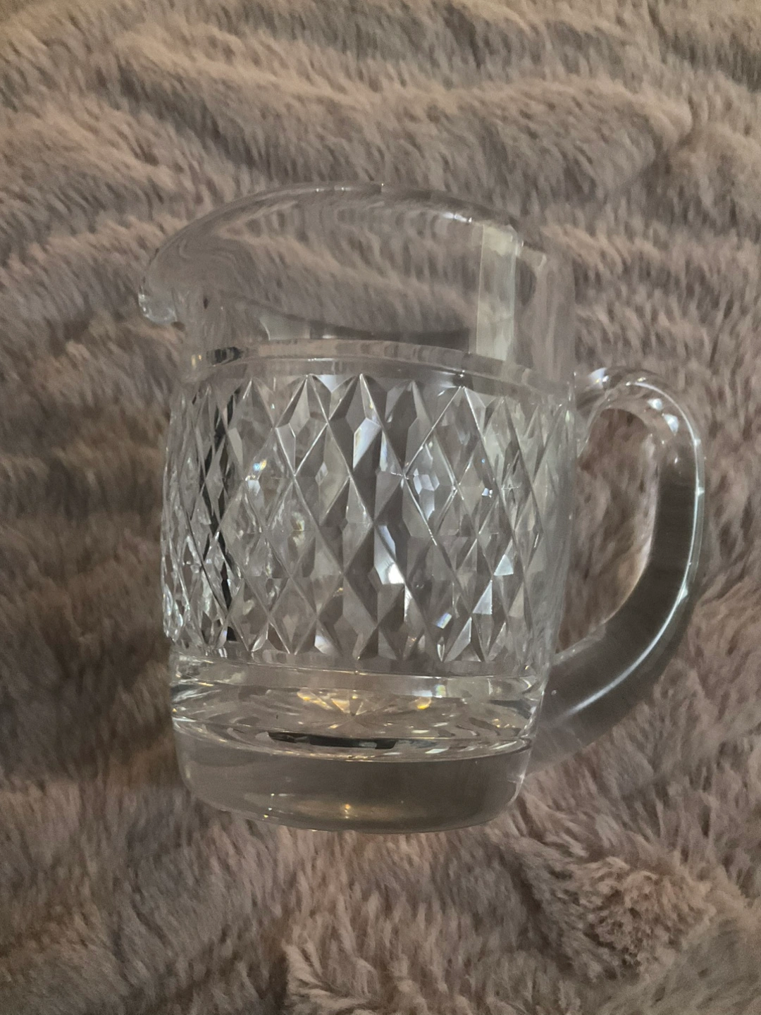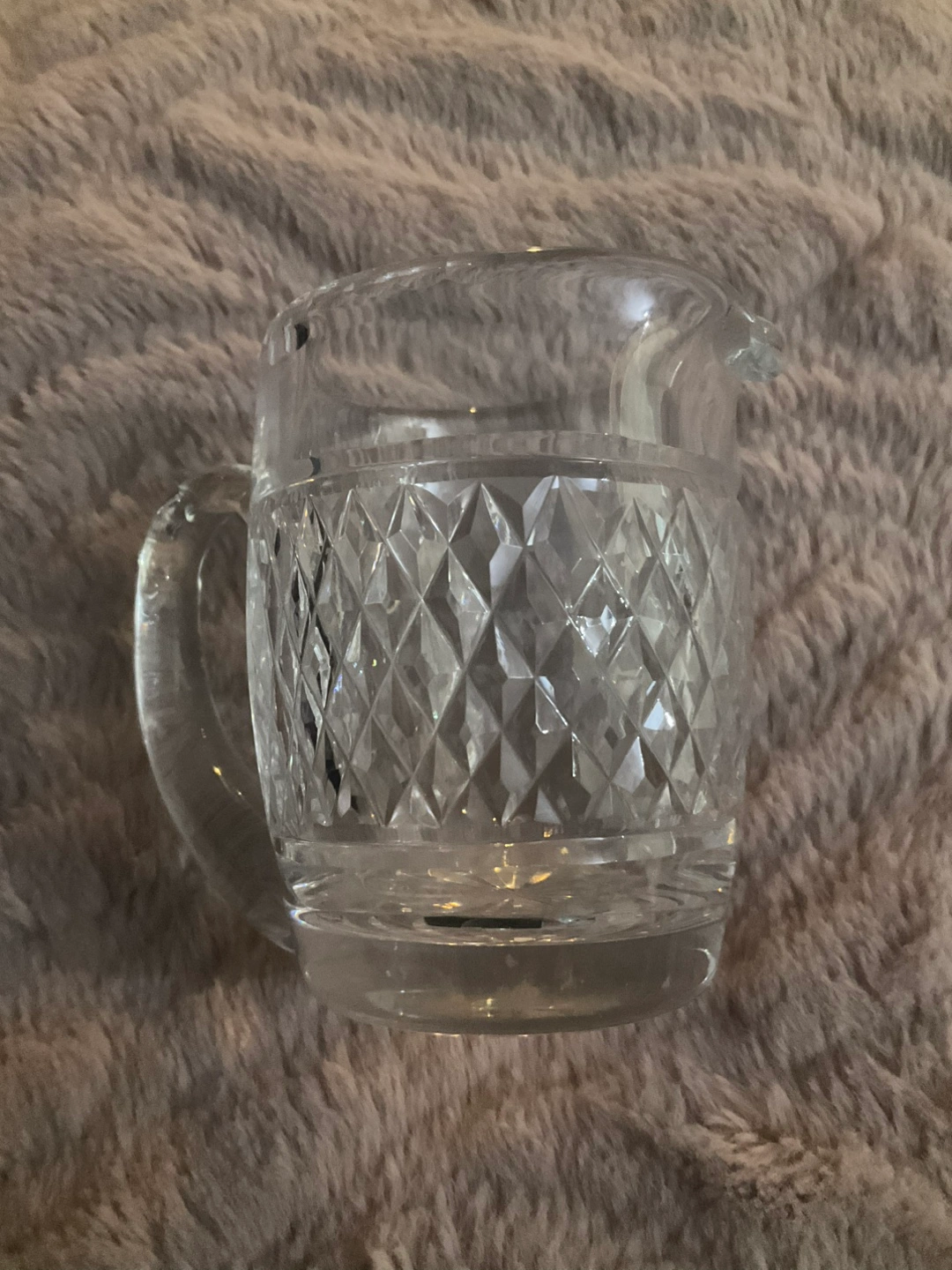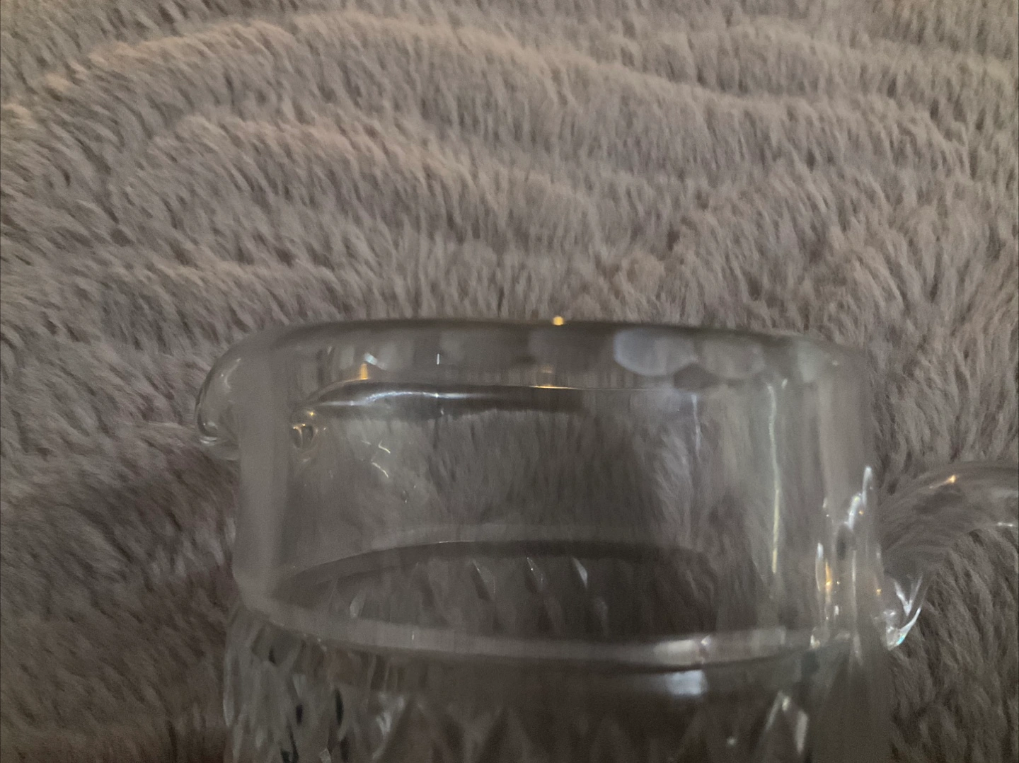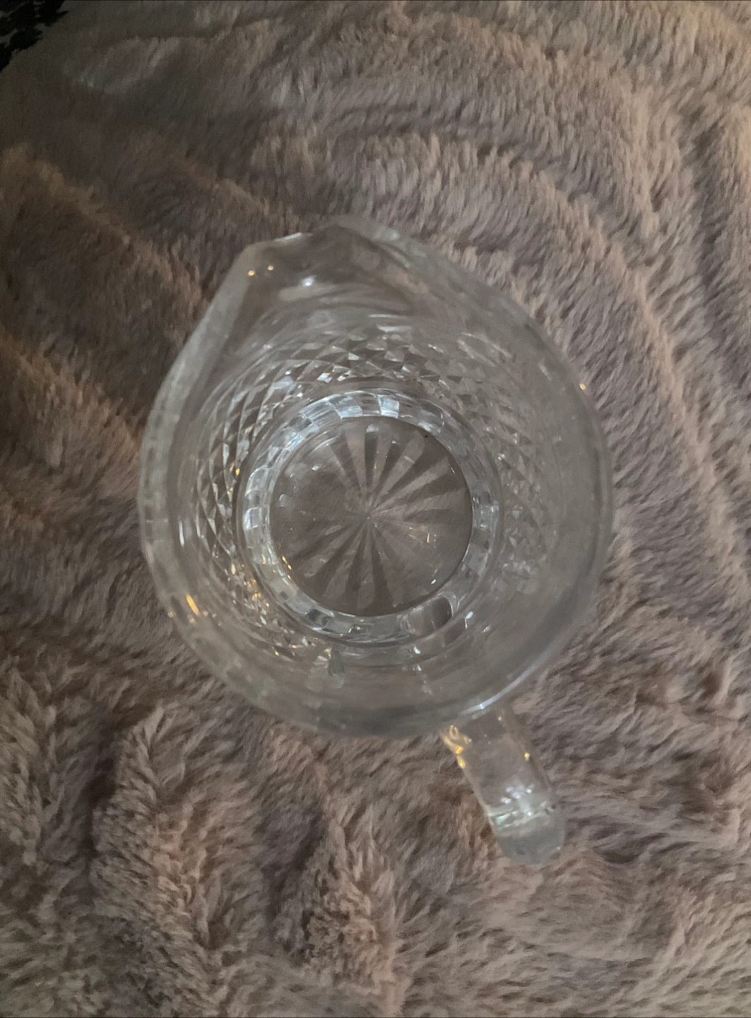 Selling a lovely crystal glass creamer ! It has a beautiful diamond cut pattern and is in great condition. Perfect for serving cream, syrup, or just as a decorative piece. Possibly Waterford