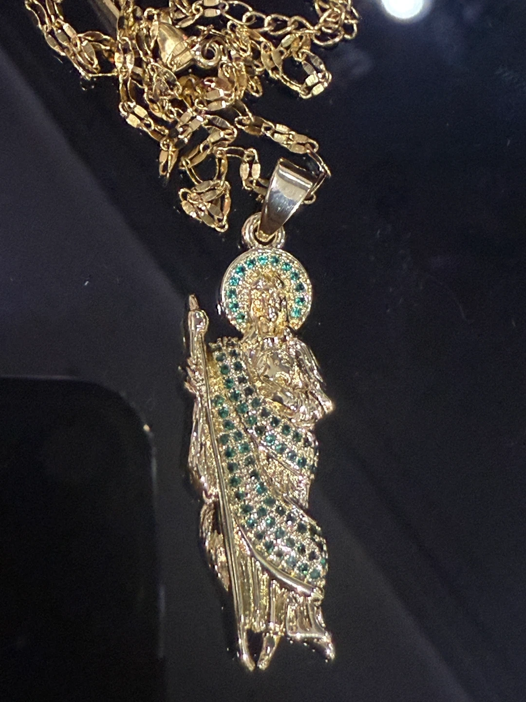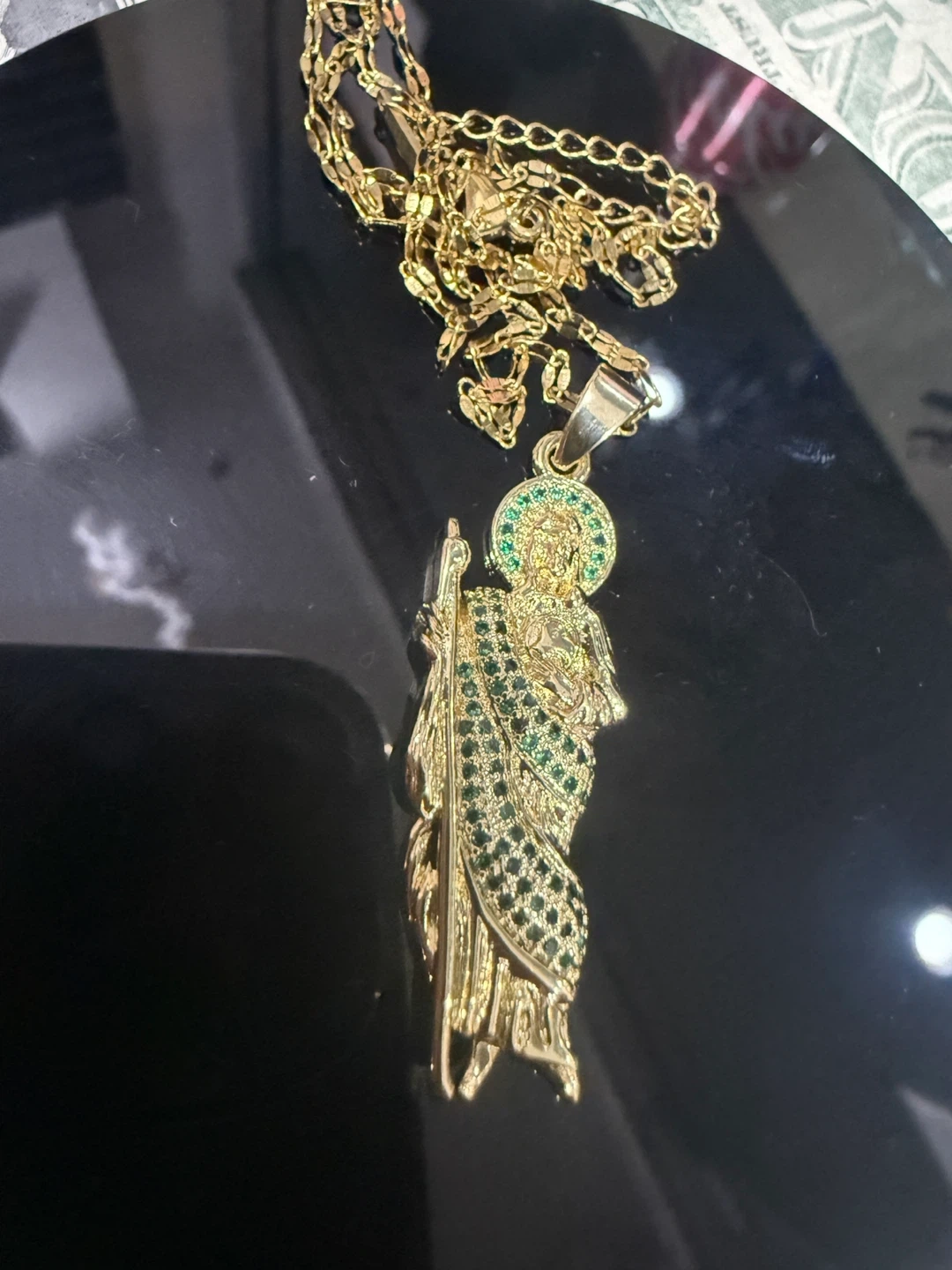 Selling a beautiful Jude pendant necklace! It's in great condition and features green accents. Perfect for adding a touch of faith and style to any outfit.