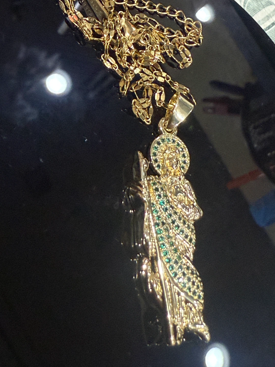 Selling a beautiful Jude pendant necklace! It's in great condition and features green accents. Perfect for adding a touch of faith and style to any outfit.