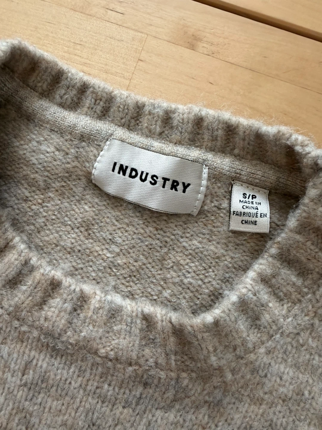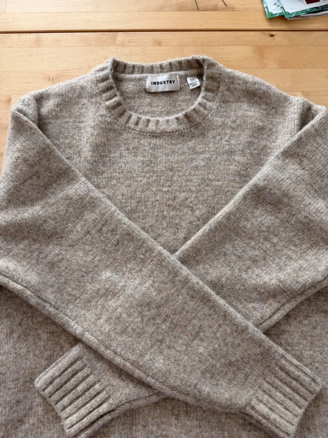 INDUSTRY crew neck sweater in a speckled beige colour. Size S/P. Cozy knit perfect for cooler weather. True to size.