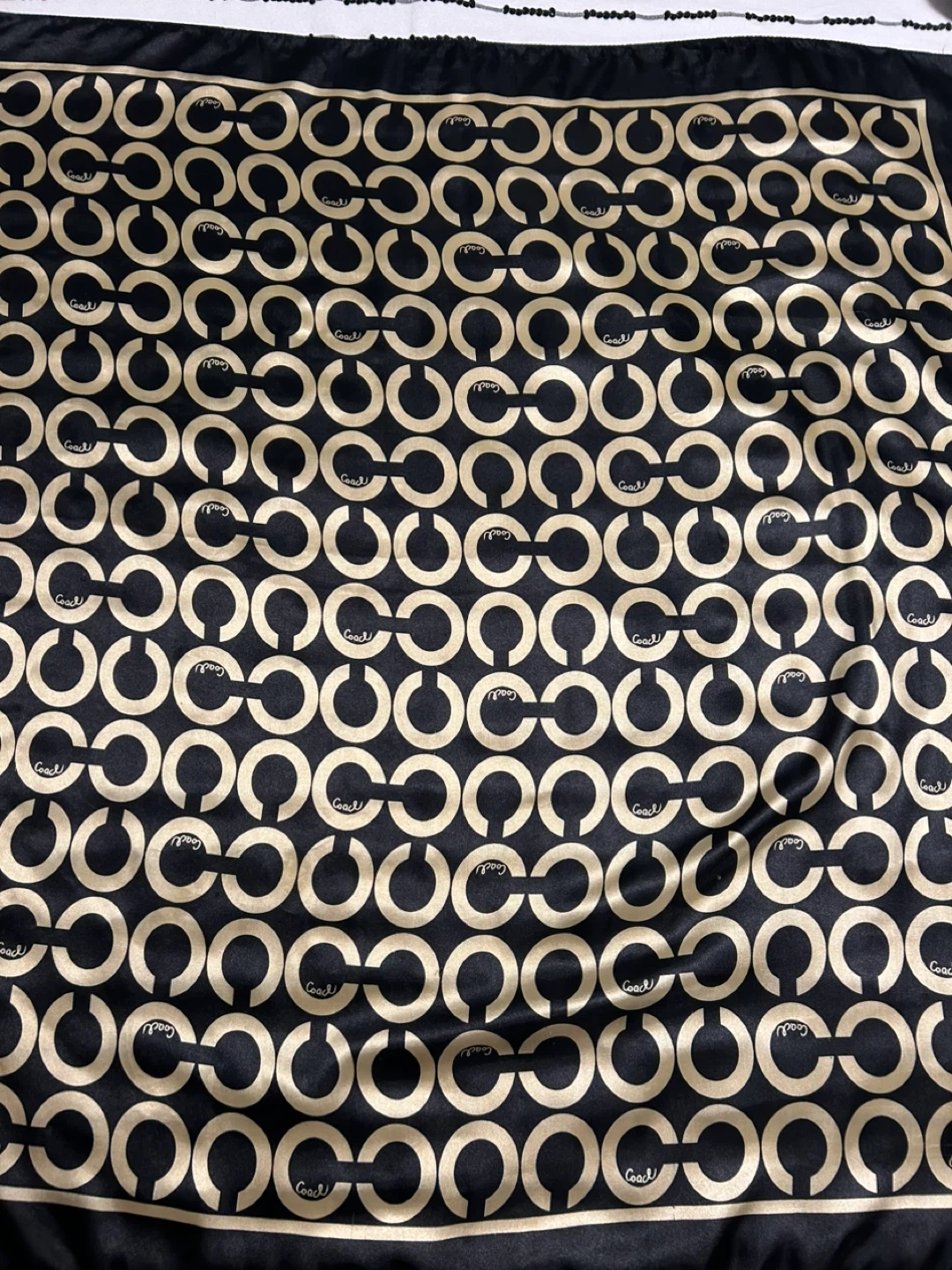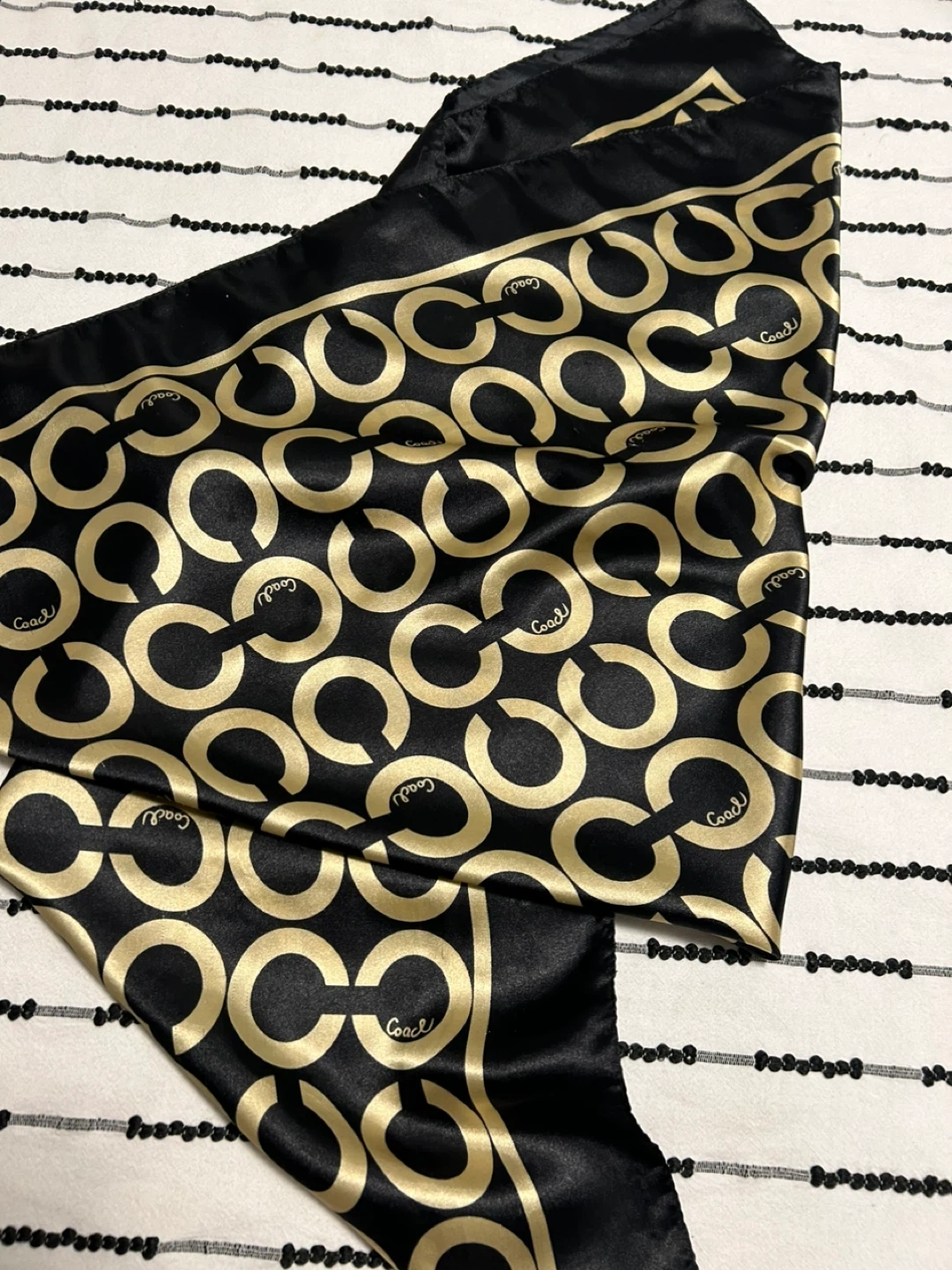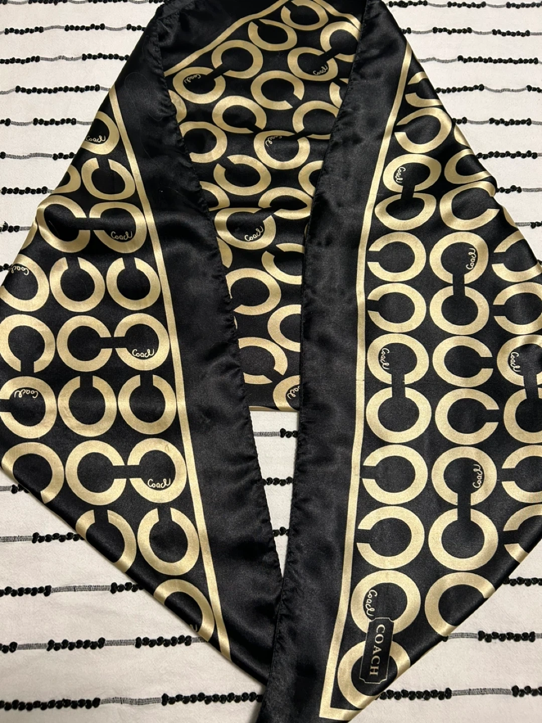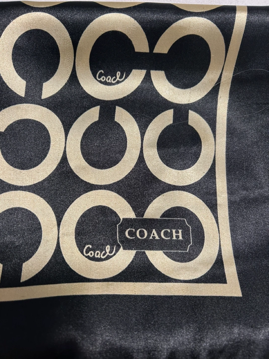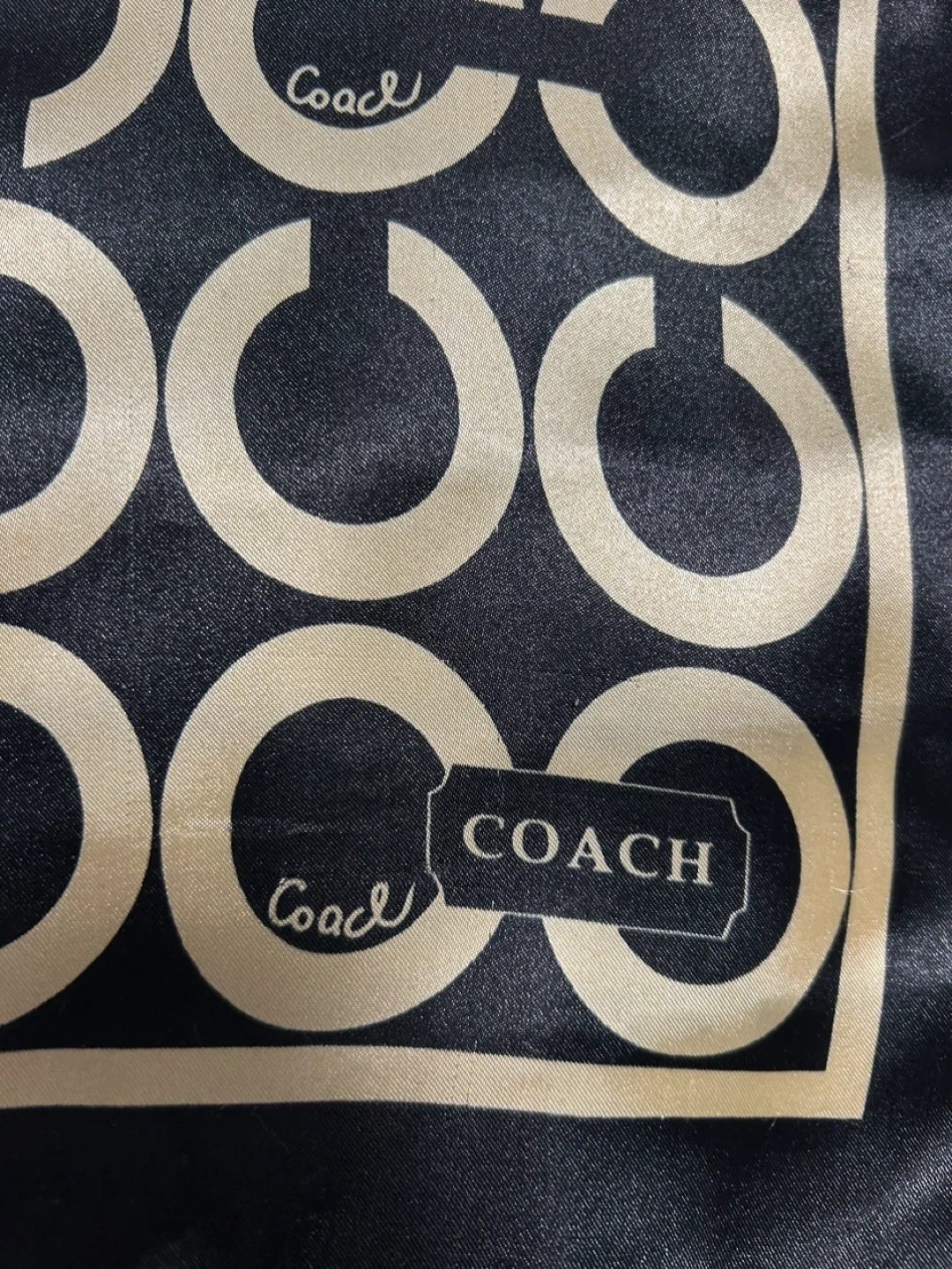 Beautiful Coach scarf featuring the signature C pattern. It's made from silk and has a shiny finish. Perfect for adding a touch of luxury to any outfit! 90 cm X 90 cm. I invite you to view my other items; if you are interested in any of them, I will give you a better price.