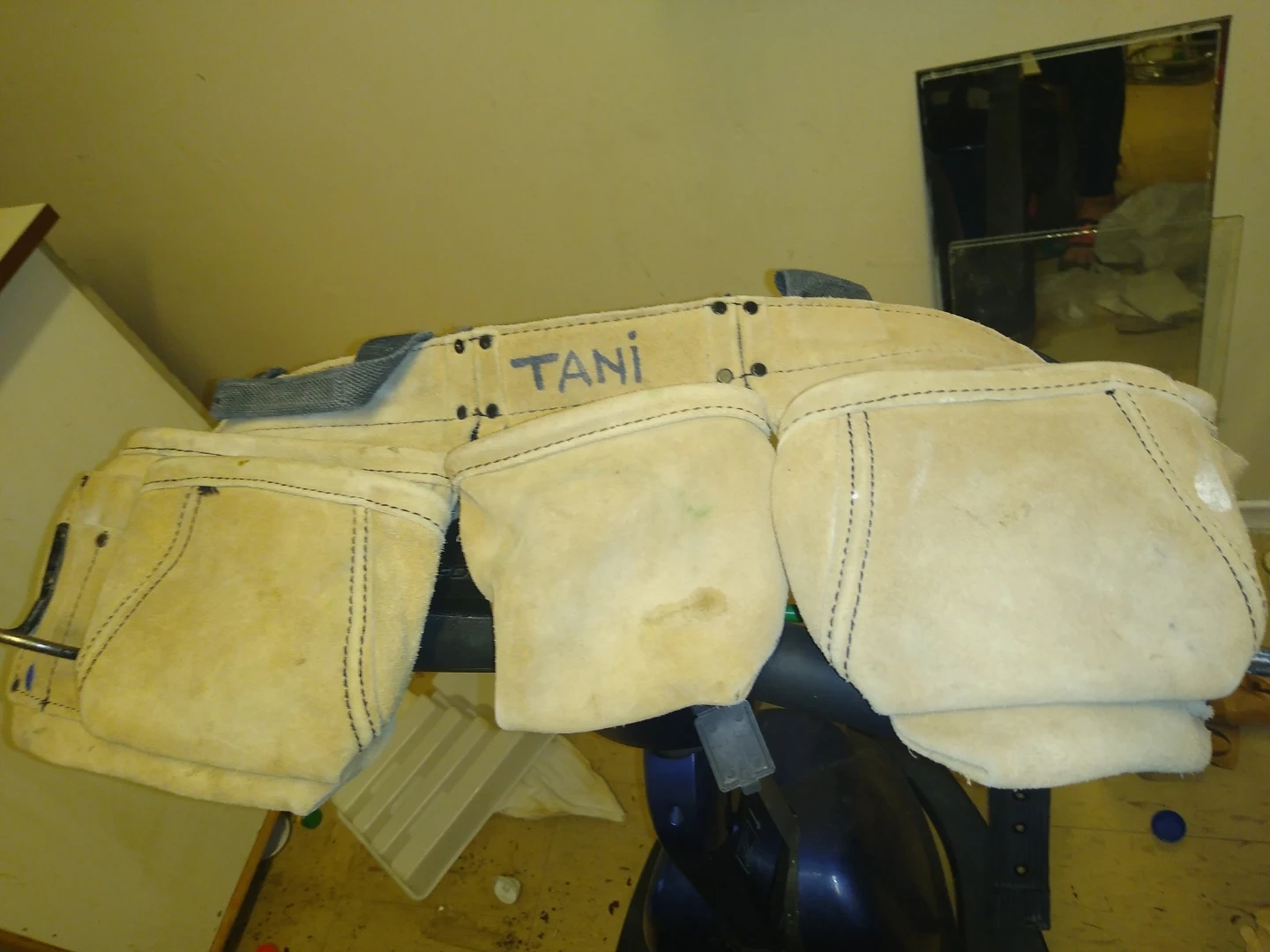 This is a very sturdy canvas tool belt can be used by any professional builder especially a carpenter . It holds everything that's necessary to get the job done and then some. It is great to have instead of having to go back to your toolbox and get your tools and and hardware and everything constantly. You can take everything with you that you need to do a job in the basement or up on the roof very handy very reliable and very professional to have.. it is in great condition no rips or tears just like new.