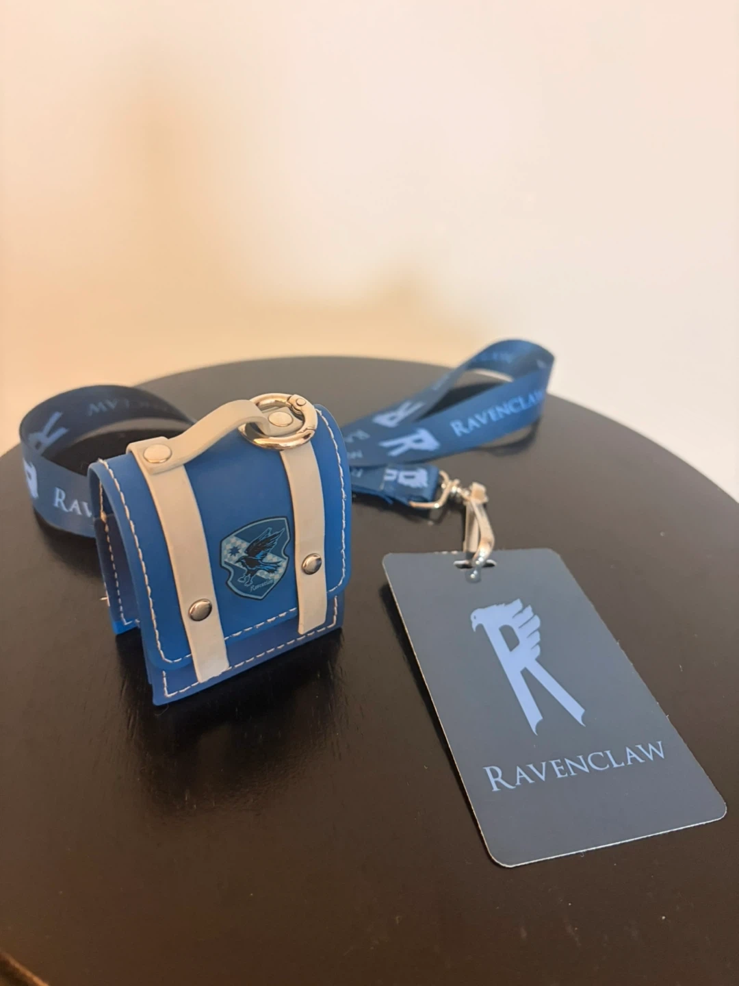 Show your Ravenclaw pride with this fun lanyard and mini bag set! It's perfect for keeping your airpods, keys or small essentials handy. Features the Ravenclaw crest and house motto.
