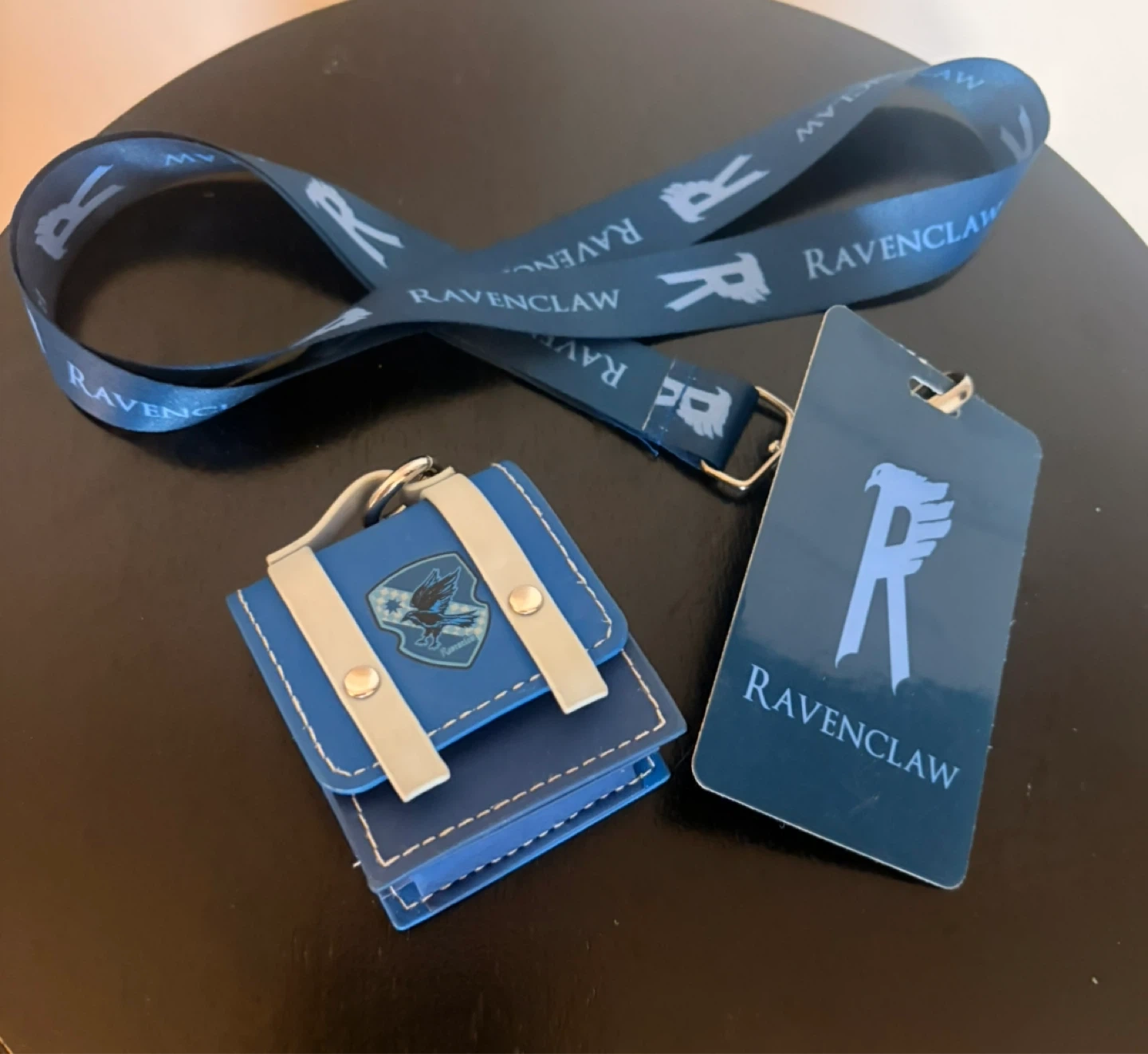 Show your Ravenclaw pride with this fun lanyard and mini bag set! It's perfect for keeping your airpods, keys or small essentials handy. Features the Ravenclaw crest and house motto.