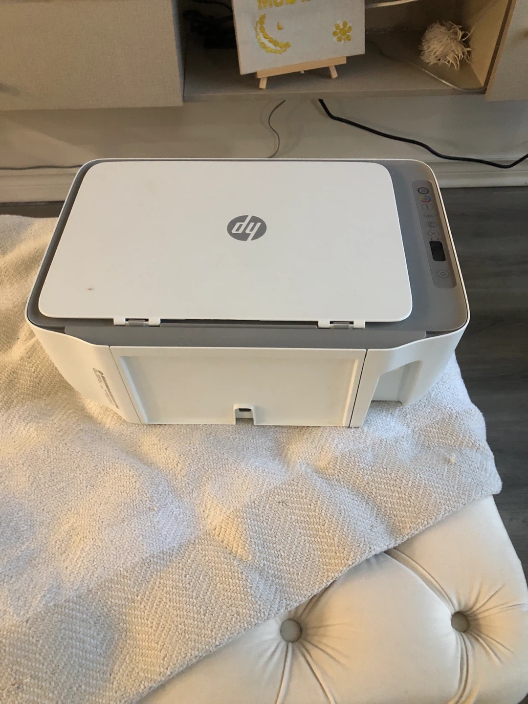 White HP printer that scans and copies. It's in good condition and ready for a new home. This printer is useful for home offices and students.