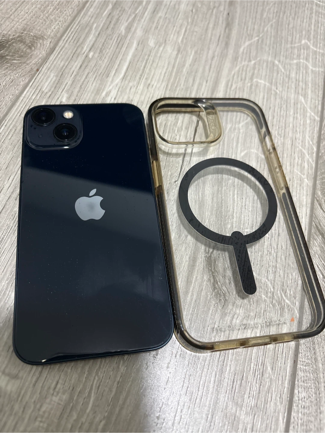 Selling an Apple iPhone 13 128Gb dark blue. It's in used condition with 75% maximum battery capacity. Includes a clear MagSafe compatible case.