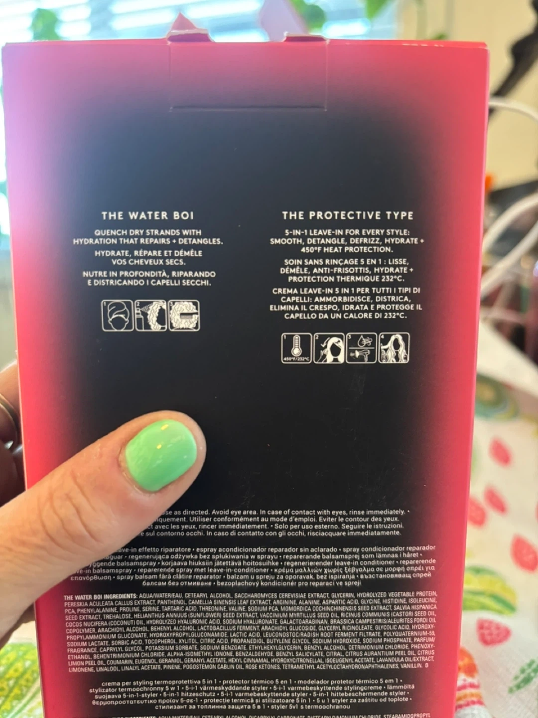 This Fenty Hair set includes The Water Boi reparative leave-in conditioner spray (200ml) and The Protective Type 5-in-1 heat protectant styler (90ml). The Water Boi quenches dry strands, detangles, and repairs. The Protective Type offers smooth, detangled, hydrated hair with 450°F heat protection. It's great for anyone looking to simplify their hair care routine while protecting against heat damage.