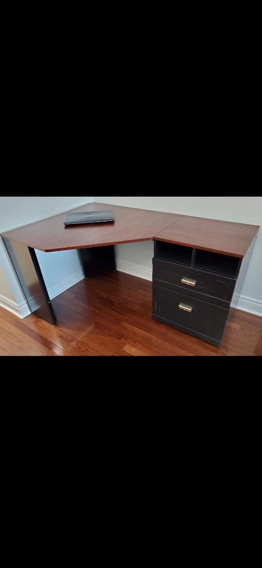 Reversible corner desk with drawers