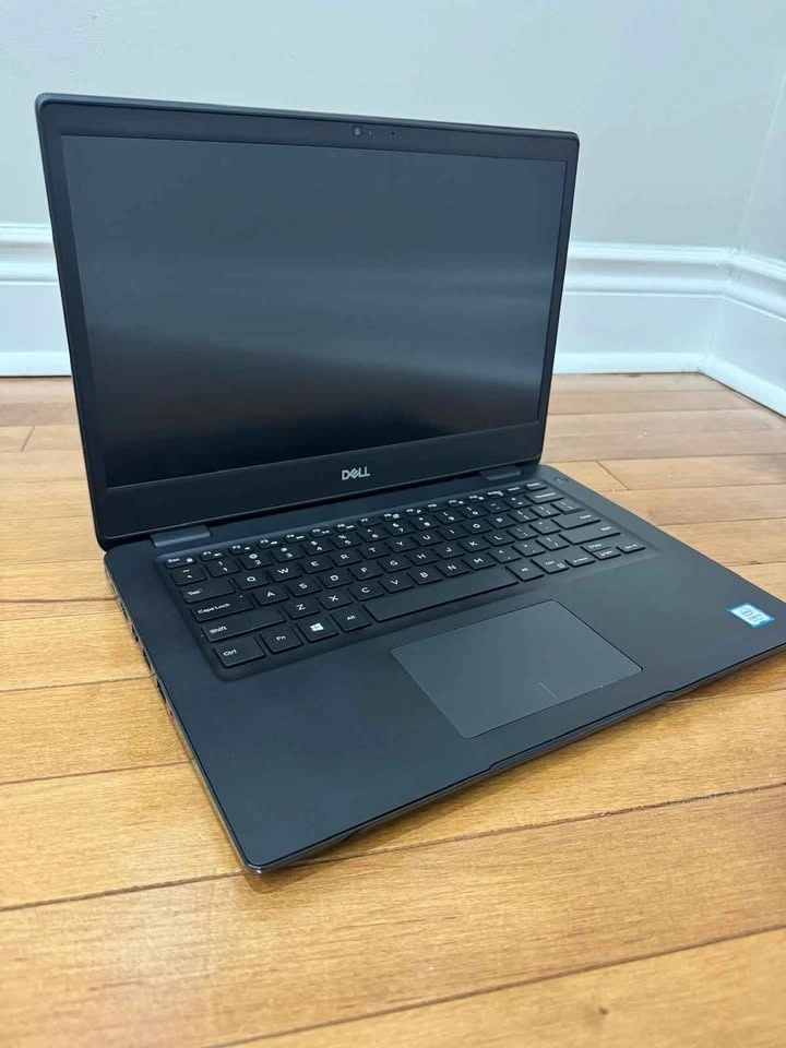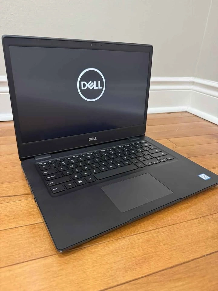 DELL Latitude 3400 Laptop. 14.1-inch screen, Intel Core i5 8th Gen processor, 8GB RAM, 256GB SSD. Features camera, WiFi, HDMI, USB, and Type-C ports. Runs Windows 11. Battery lasts 3+ hours. Comes with Dell charger. Located near Redwillow Road in Brampton.