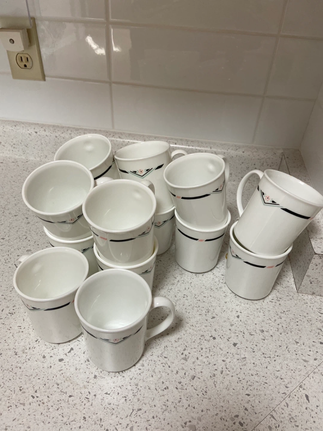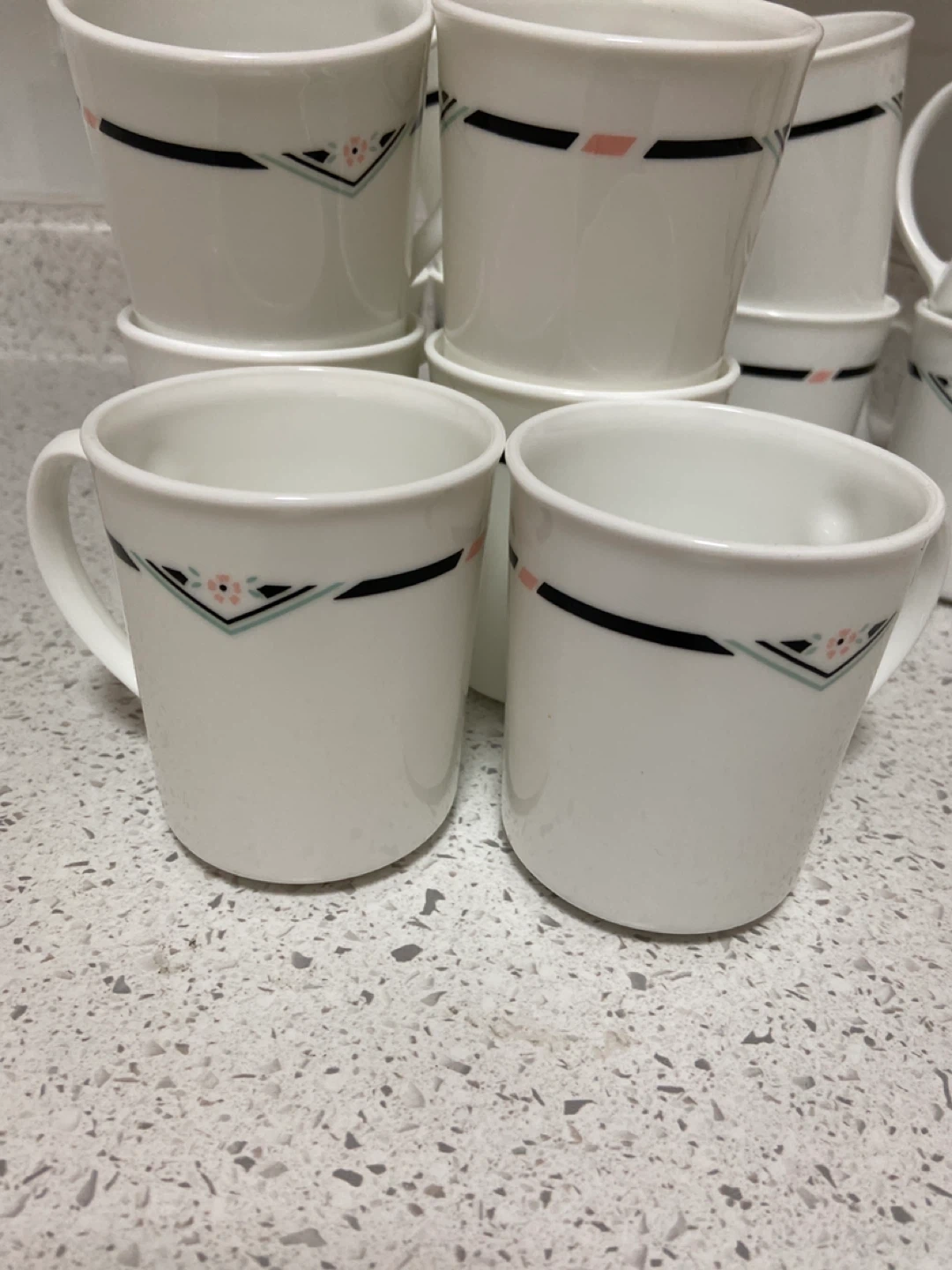 Buy & SellSet of 11 White Ceramic MugsSet of 11 White Ceramic Mugs$25Set of Corelle 14 white ceramic mugs with a decorative pink and teal geometric band. Dishwasher safe. Great for coffee or tea!ConditionLike newWHERE TO MEETCheck LocationView MapSELLERverifiedSanamFlemingdon Park1000+161 reviews0 chats·0 favorites·10 viewsSEND CHAT TO SELLERHi Sanam! I’m interested in your listing.Hi Sanam! I’m interested in your listing.Get the Karrot app to chatSign In to chat