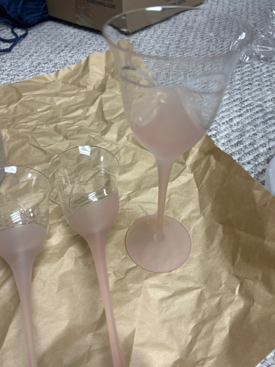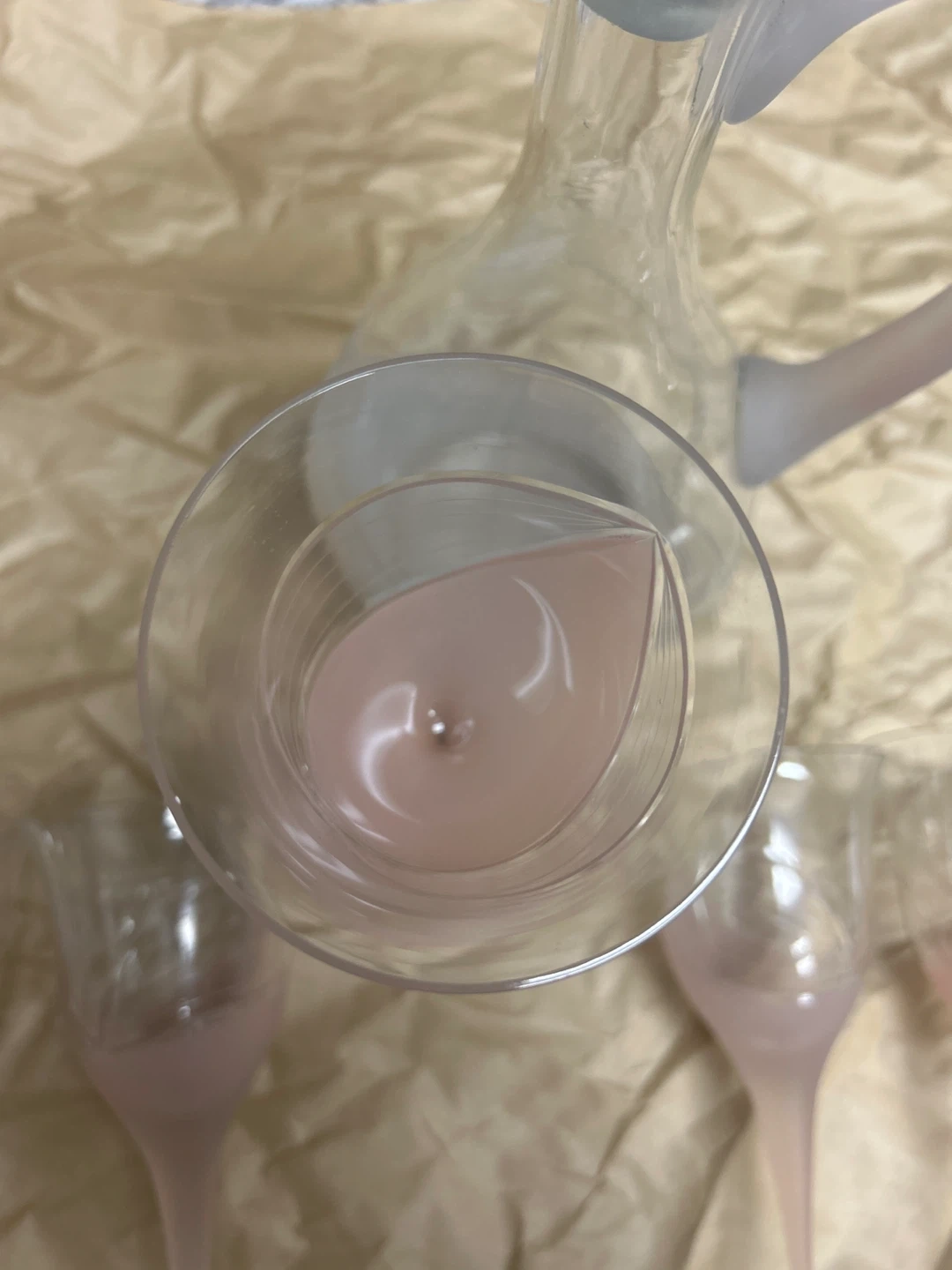 Frosted Pink Wine Glasses and Decanter Set