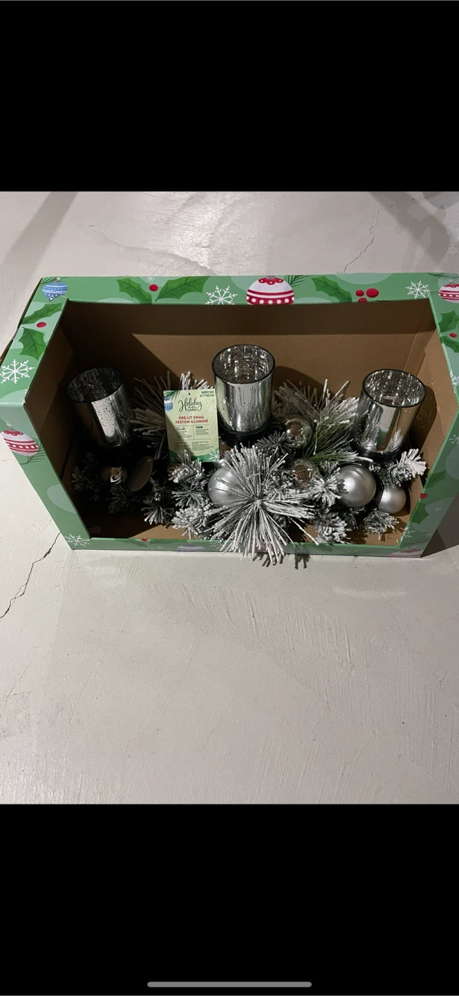 Selling a Holiday Living 28-inch Silver Flocked Centerpiece. It comes in its original box! Item number is 739036, and the manufacturer number is LW64-HXJE080R