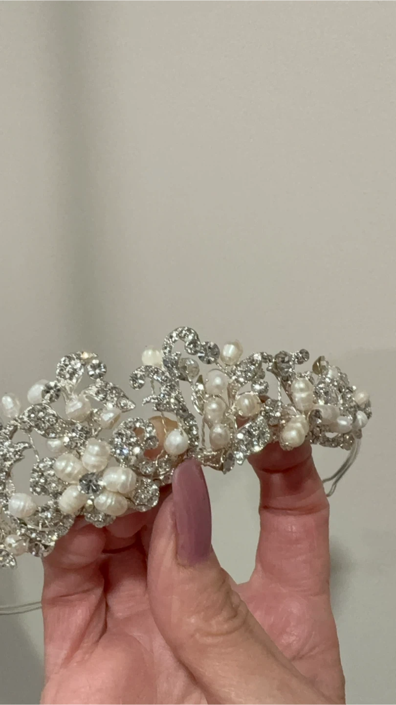 Selling a beautiful tiara adorned with pearls and rhinestones! It's in great condition and would be perfect for a wedding or special occasion! It sparkles beautifully under the lights, and looks very luxurious. It’s brand new from David’s.