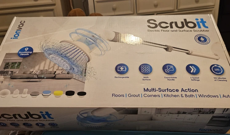 Selling a Scrubit Electric Floor and Surface Scrubber! This multi-surface action scrubber is great for floors, grout, corners, kitchens, bathrooms, windows, and even your car. It features an expandable handle and two-speed settings. It's also rechargeable and can run for 120 minutes on a single charge. Comes with 9 scrubbing heads!