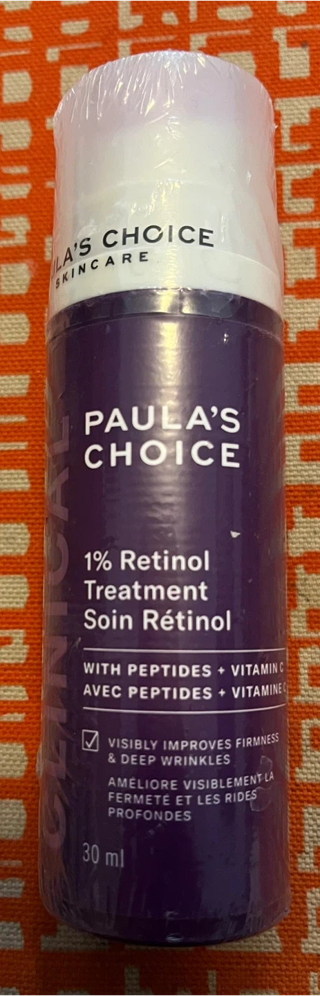 Paula's Choice 1% Retinol Treatment with Peptides and Vitamin C. This serum visibly improves firmness and deep wrinkles. Comes in a 30ml bottle.