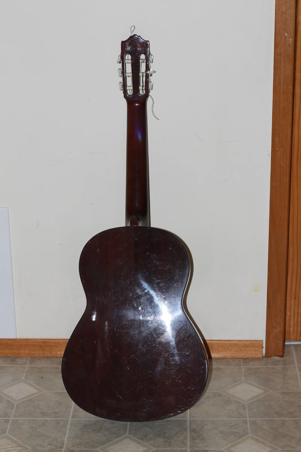 A Yamaha classical guitar in near mint condition. It includes a hardshell case, a tuning clamp, pick, and 3 new extra nylon strings. This instrument is perfect for beginner musicians looking to learn classical guitar.