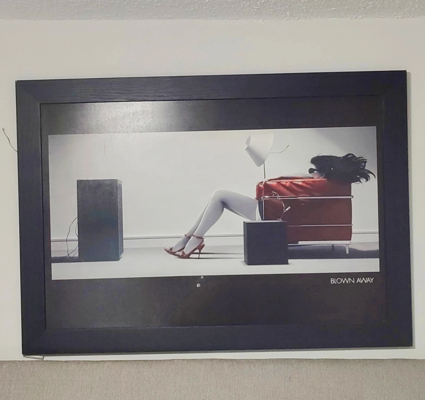 This framed art print features a striking visual with the text "Blown Away" printed on it. The artwork has a modern aesthetic and comes in a black frame. It's ready to hang and adds a unique touch to any room.