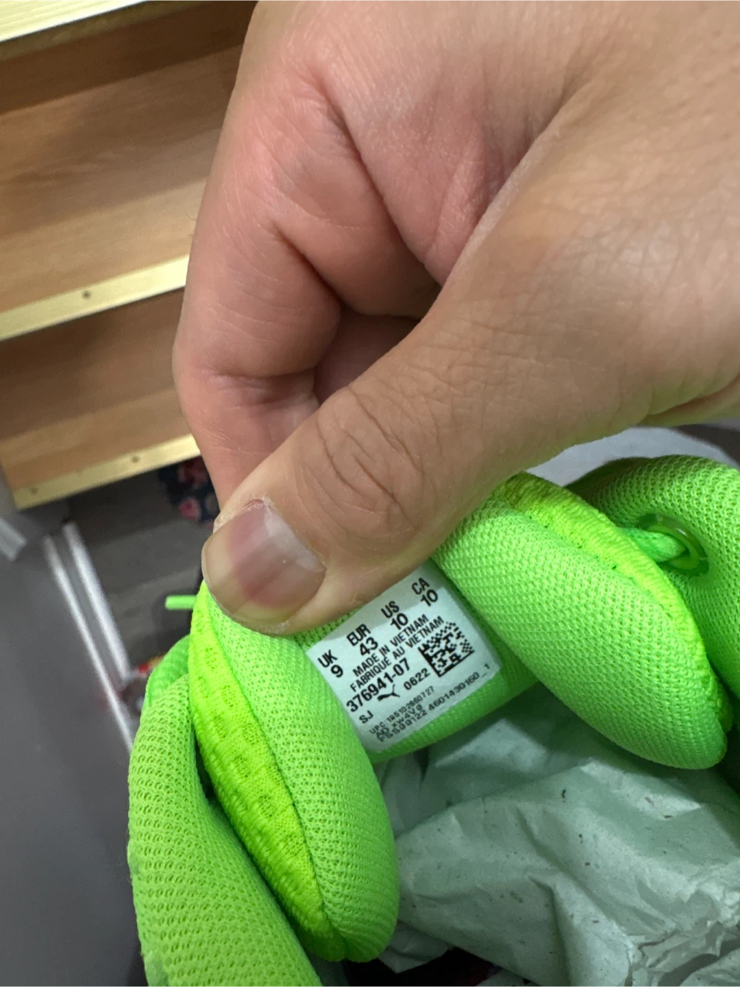 Men's size 10, EUR 43, UK 9, CA 10. Made in Vietnam.
