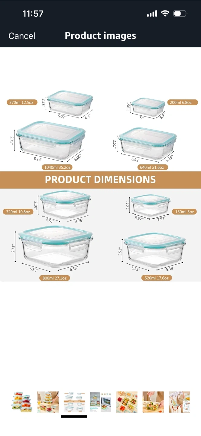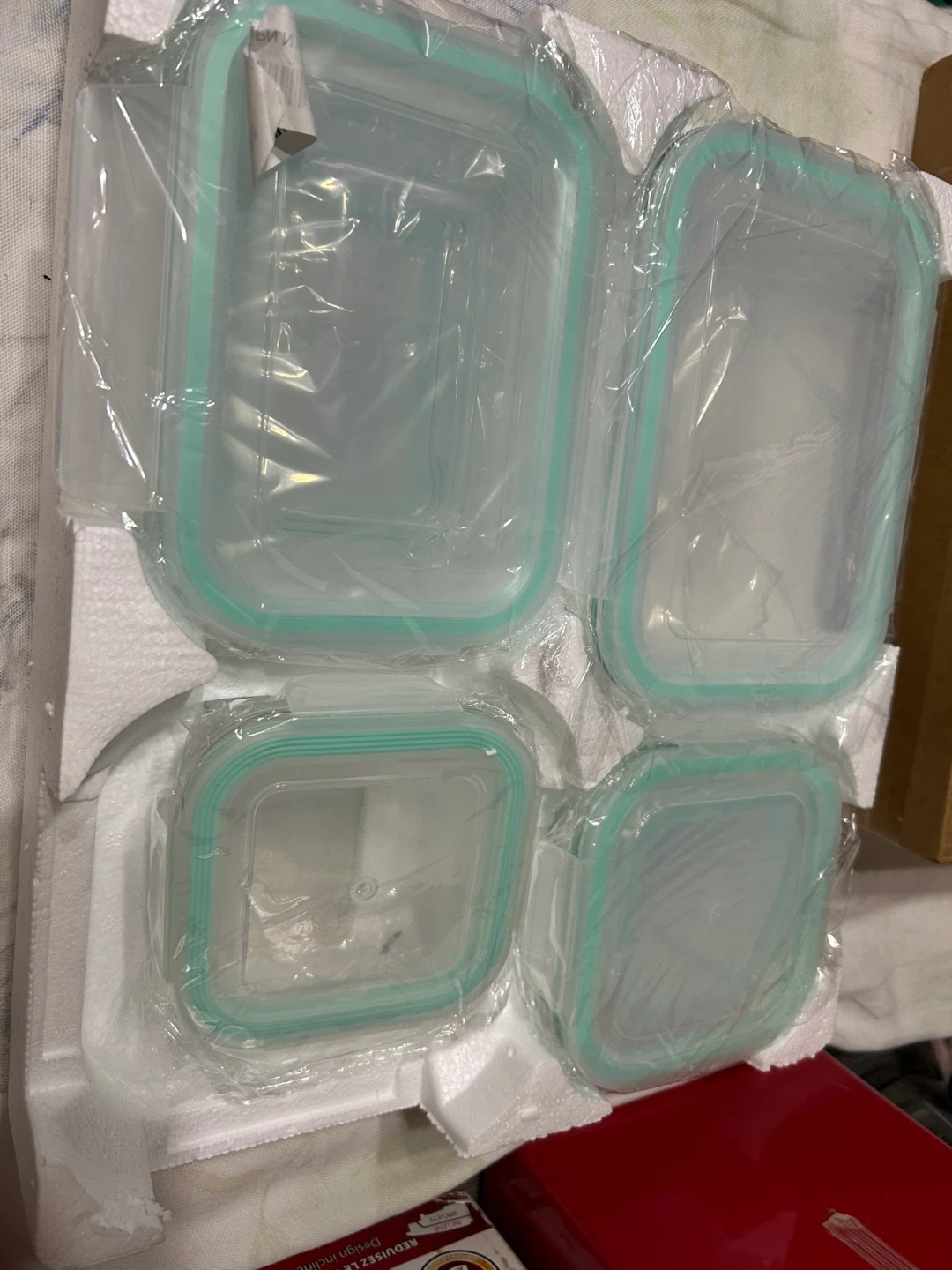 Set of new 6 glass food storage containers. Includes various sizes ranging from 150ml to 1040ml. Features airtight lids for freshness. These are great for meal prep and leftovers! Pick up at Islington /401 / bergamot avenue Etobicoke.
