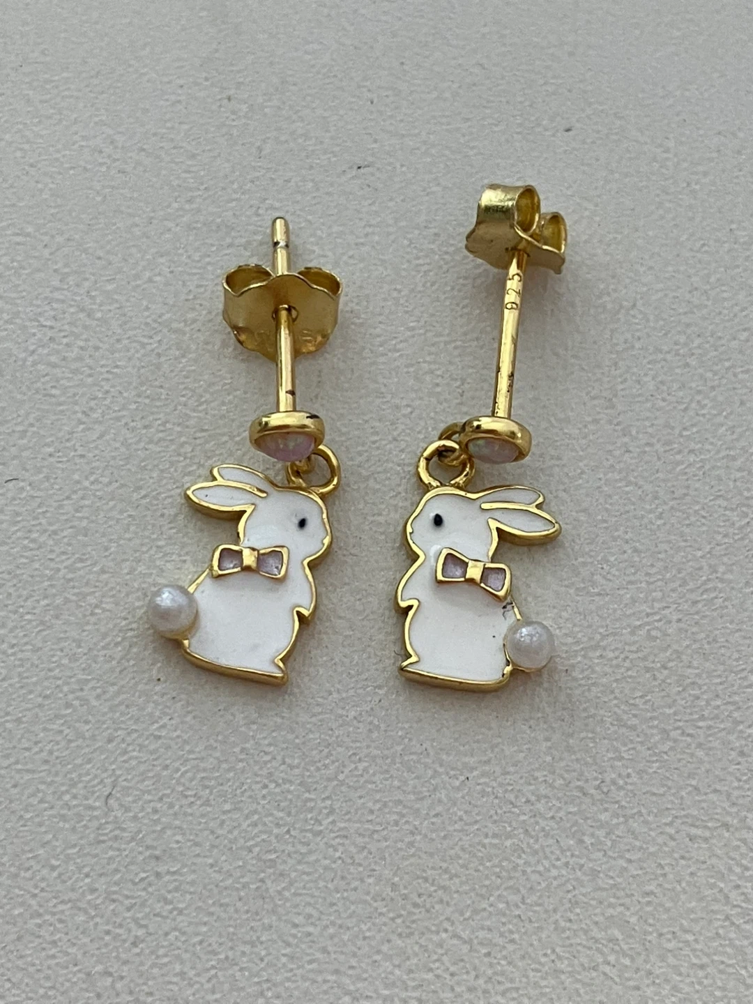 925 Gold Plated Bunny Enamel Earrings with Pearls