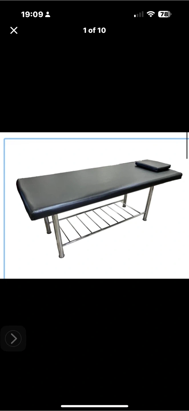 Selling a massage bed in great condition. It's perfect for professional or home use. Originally bought for $360.00. Massage bed in good condition. Solid metal frame, padded top and a storage shelf underneath. Doesn’t fold. No damage.