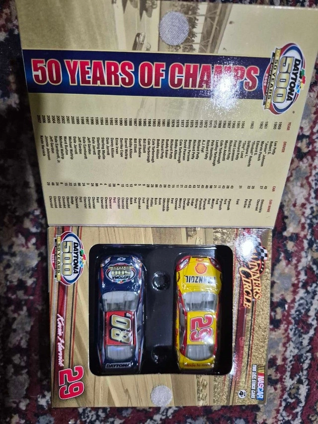 Offering a Winners Circle NASCAR, #29 Kevin Harvick, Daytona 500, 50 Years, 2 car set. This is a Limited Edition Two Car Set from 2008, celebrating 50 years of the Great American Race. It's an Officially Licensed NASCAR Product. The box is autographed and the set is in fair condition. If you're reading this, yes, it’s still available!