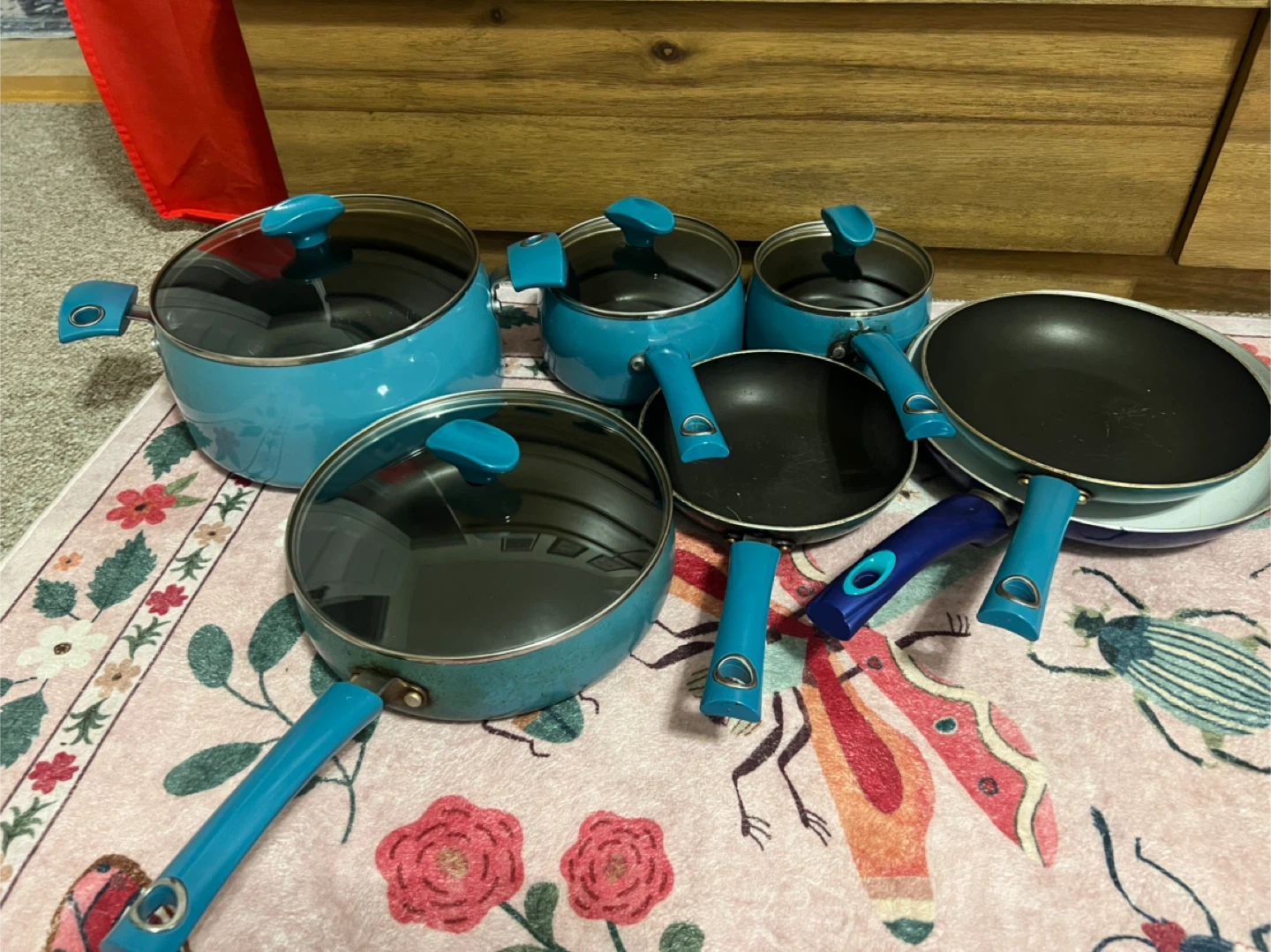 Selling a used Rachael Ray Porcelain Cookware set. It's a durable nonstick performance set. The largest pot is 6 QT / 5.7 L. There are several pieces plus one bonus pan. Price is very negotiable! Pick up in Astoria. Cash or Venmo