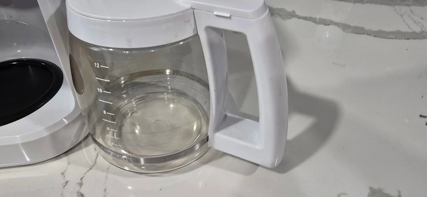 This is a white Cuisinart coffee maker. It has a carafe with measurement markings up to 12 cups. Features include auto-on, brew, clock, and min functions.brand new just open to check on it