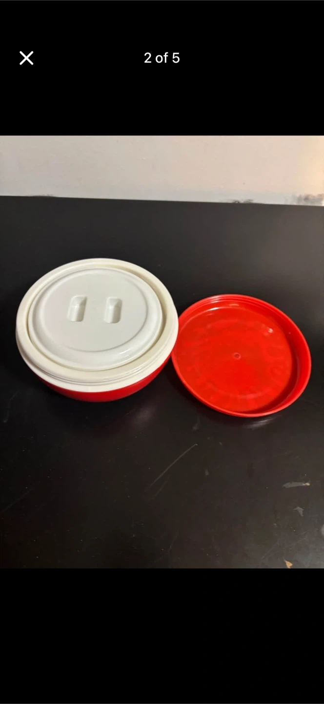 Retro insulated food container with a fun strawberry design on the lid. It includes the main pot, an inner white lid, and an outer red lid. This would be great for keeping food warm or cold on the go! Smoke free pet free home . Pick up 551 emerson street. Coquitlam Cash only. No delivery