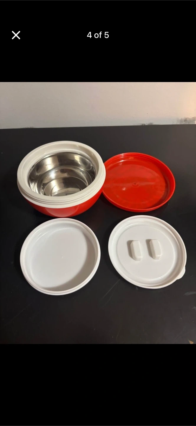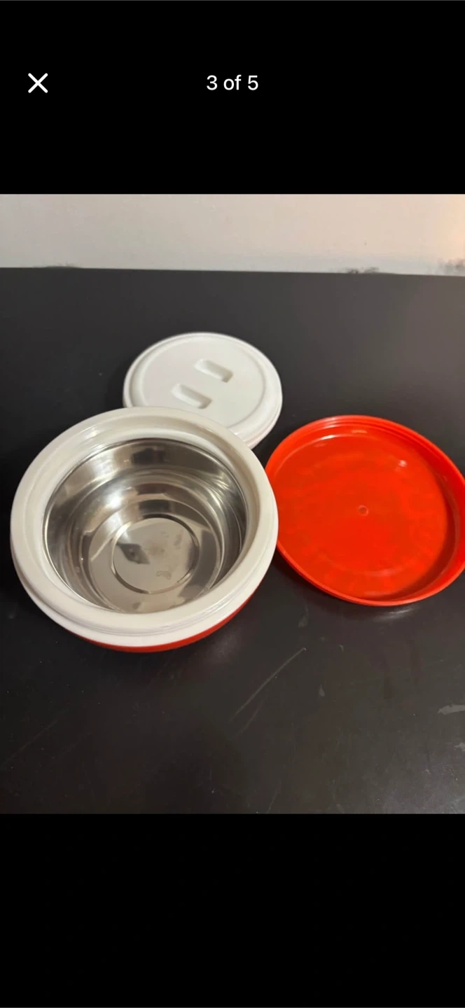Retro insulated food container with a fun strawberry design on the lid. It includes the main pot, an inner white lid, and an outer red lid. This would be great for keeping food warm or cold on the go! Smoke free pet free home . Pick up 551 emerson street. Coquitlam Cash only. No delivery