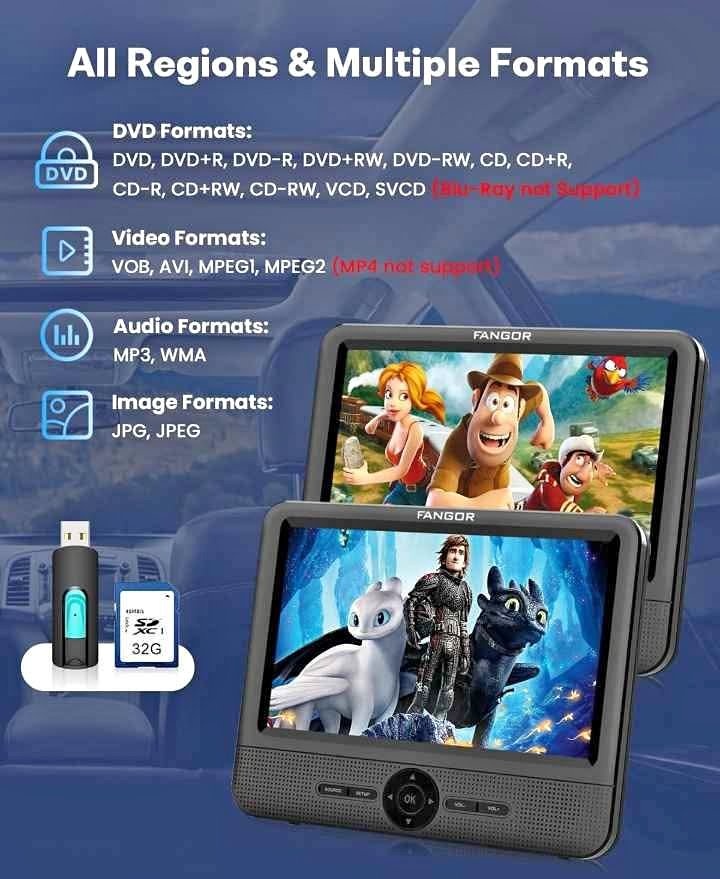 FANGOR 7.5" Dual Portable Car DVD Player