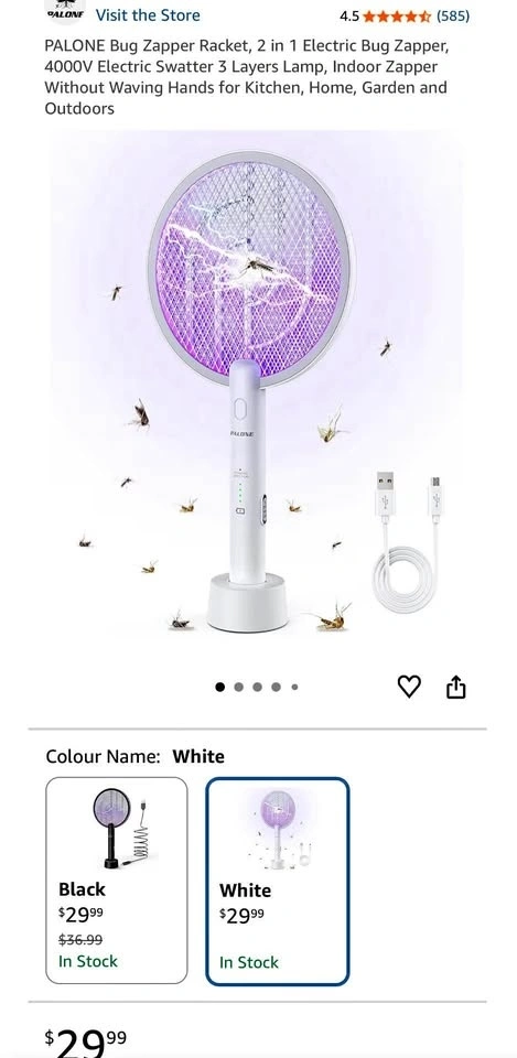 New PALONE PALONE Bug Zapper Racket, 2 in 1 Electric Bug Zapper, 4000V Electric Swatter 3 Layers Lamp. Indoor Zapper Without Waving Hands for Kitchen, Home, Garden and Outdoors. Retails for $29.99 on Amazon. Asking $15. X-posted. Pick up near Coxwell and Danforth.