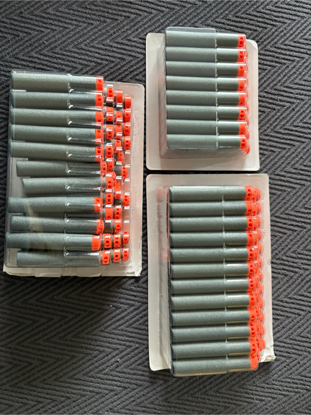 Selling three packs of Nerf Elite darts, each containing 10 darts for a total of 30. Perfect for stocking up on ammo for your Nerf battles! They are in new condition and ready for action