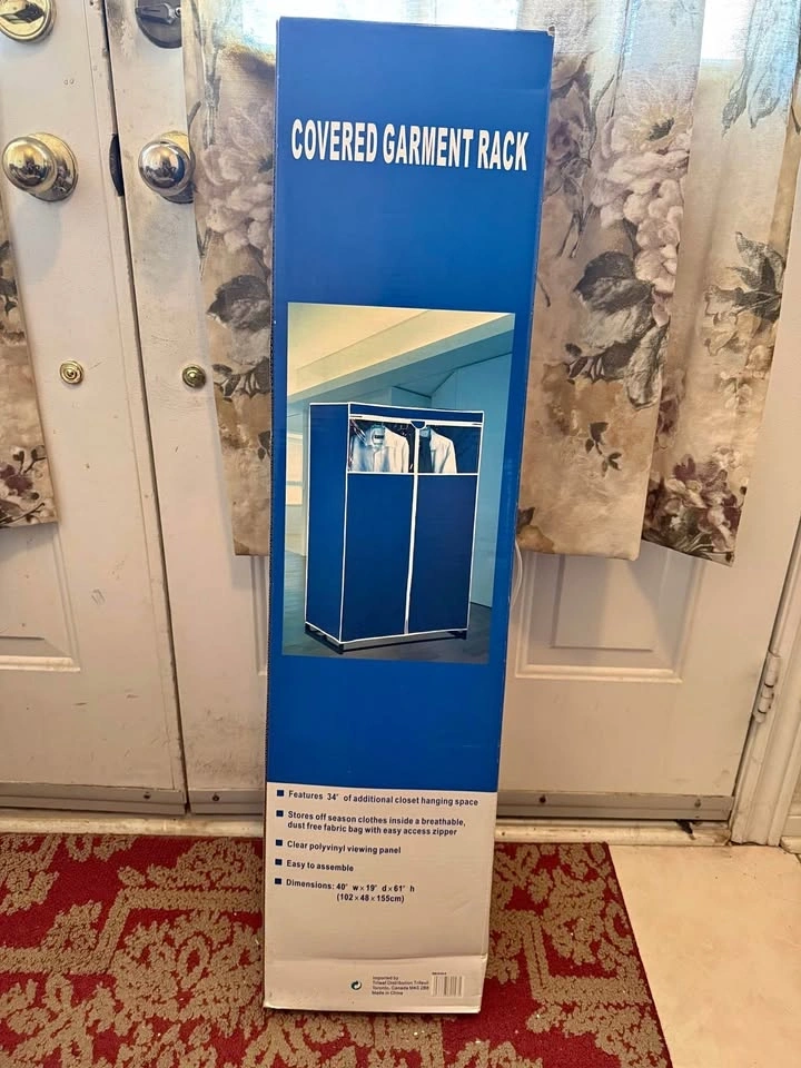 Brand New Covered Garment Rack on Wheels. Originally paid $70. Pick up in Markham. Cash only please.