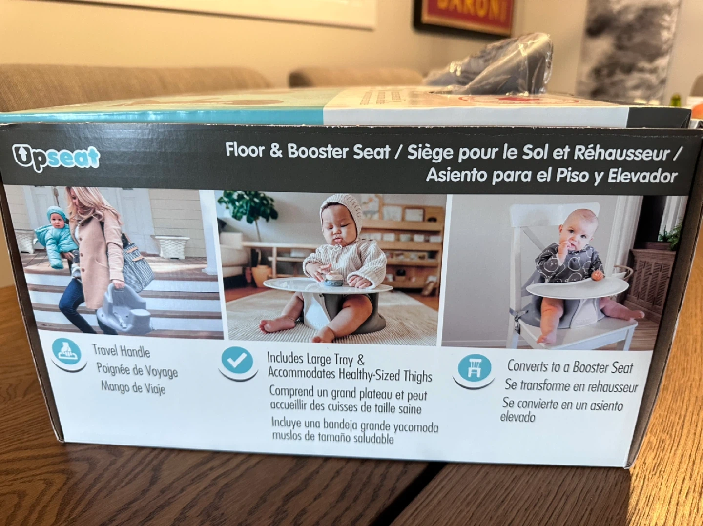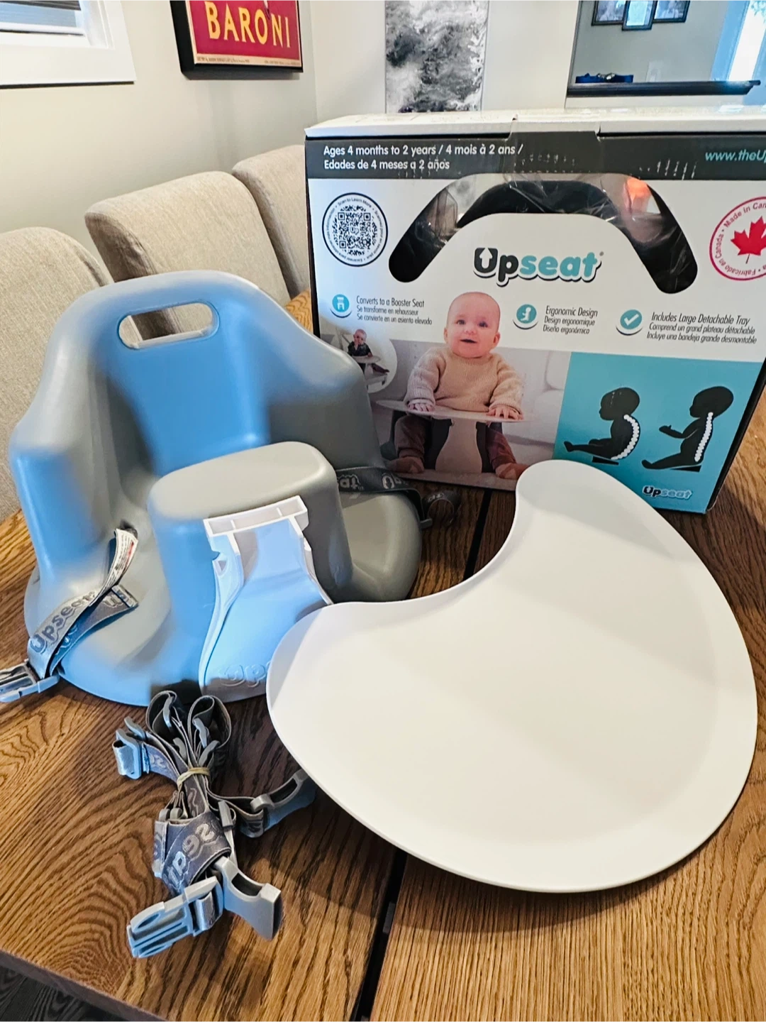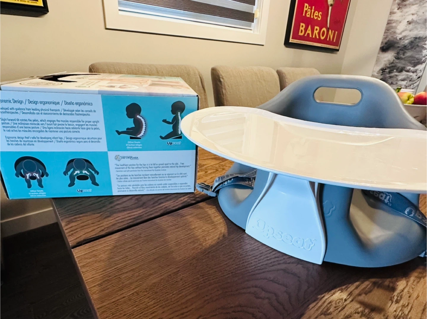 Lightly used Upseat Baby Floor Seat with Tray, ideal for babies learning to sit. Ergonomic design supports proper posture and upright positioning for feeding or playtime.