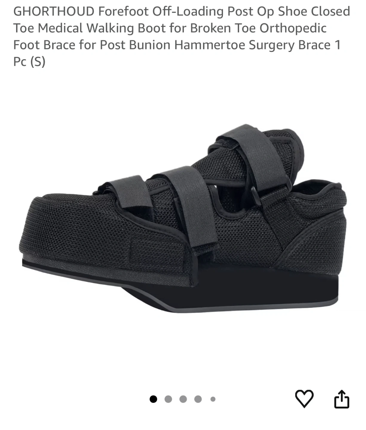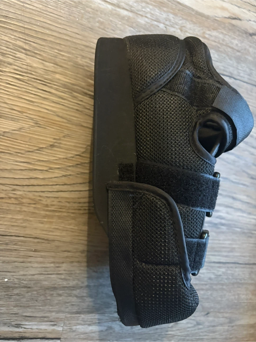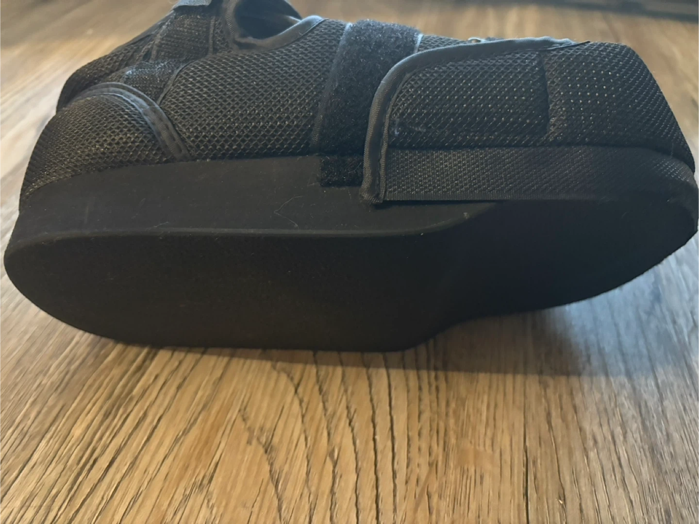 Selling a GHORTHOUD Forefoot Off-Loading Post Op Shoe in size S. It's a closed-toe medical walking boot designed for broken toes and orthopedic foot support. This brace is ideal for post-bunion or hammertoe surgery. It is black and in great condition