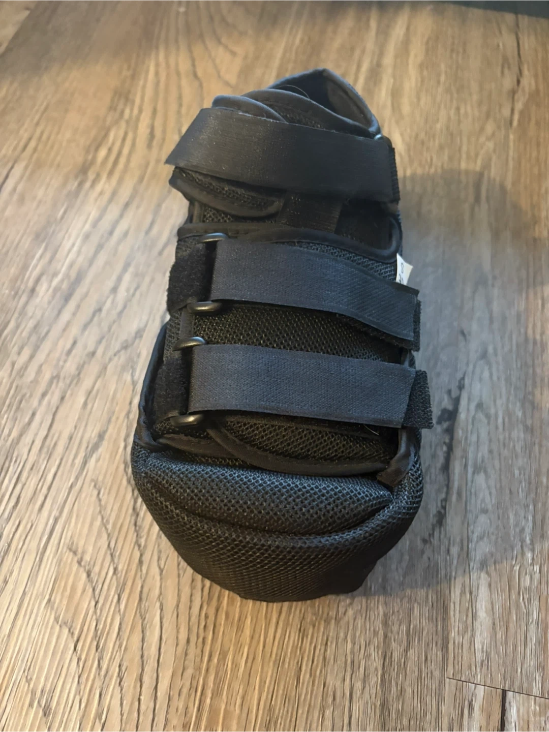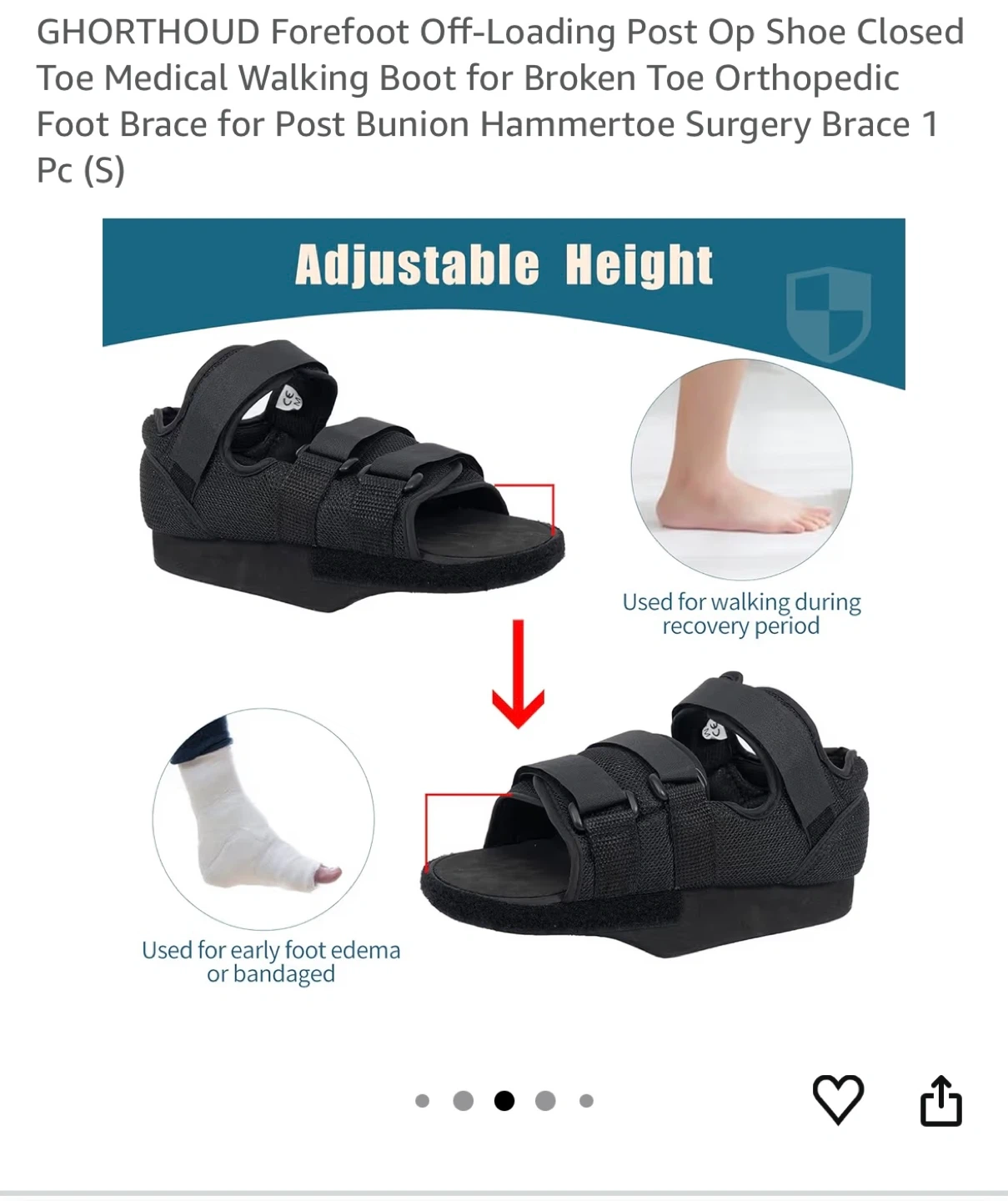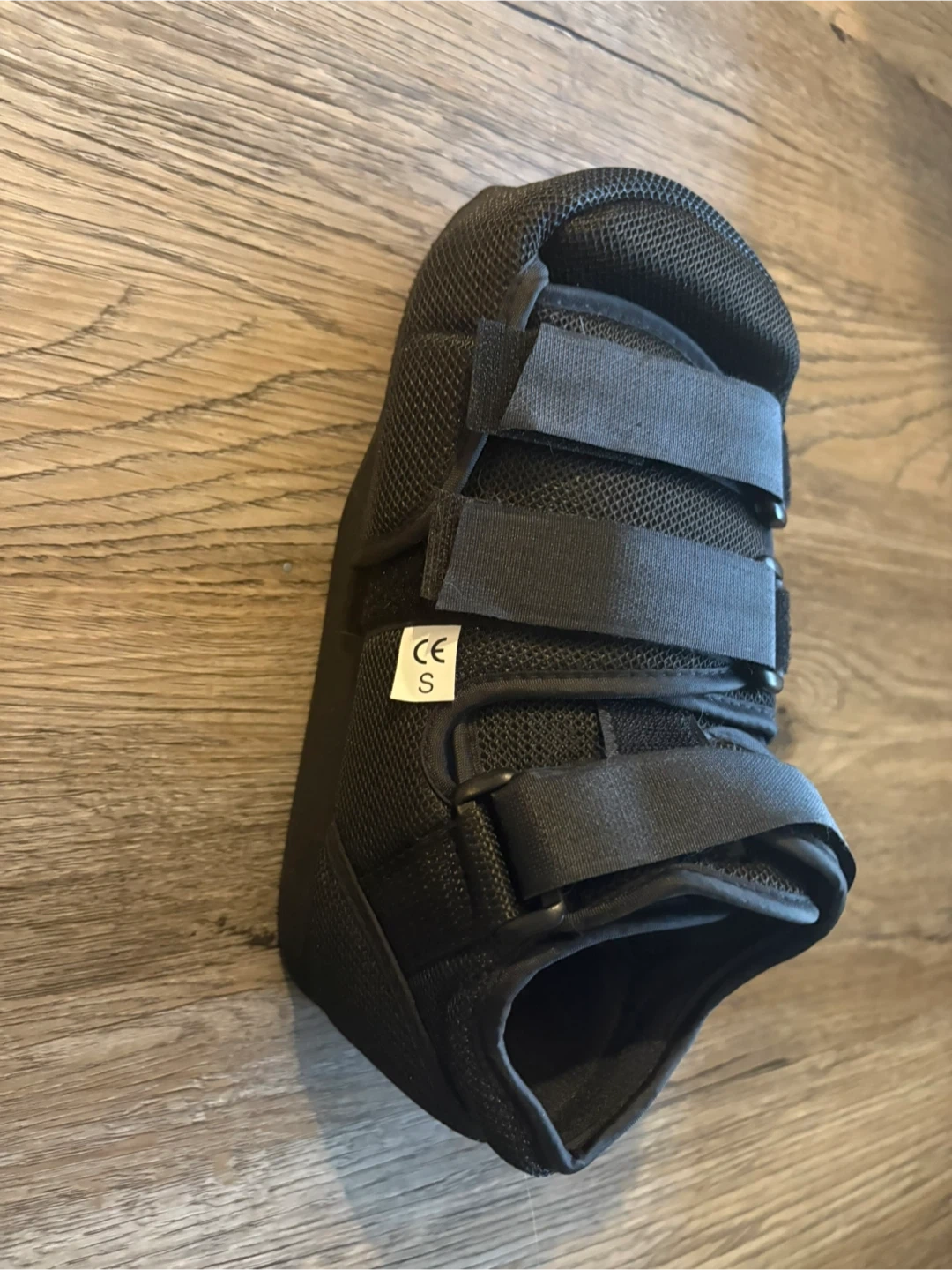 Selling a GHORTHOUD Forefoot Off-Loading Post Op Shoe in size S. It's a closed-toe medical walking boot designed for broken toes and orthopedic foot support. This brace is ideal for post-bunion or hammertoe surgery. It is black and in great condition