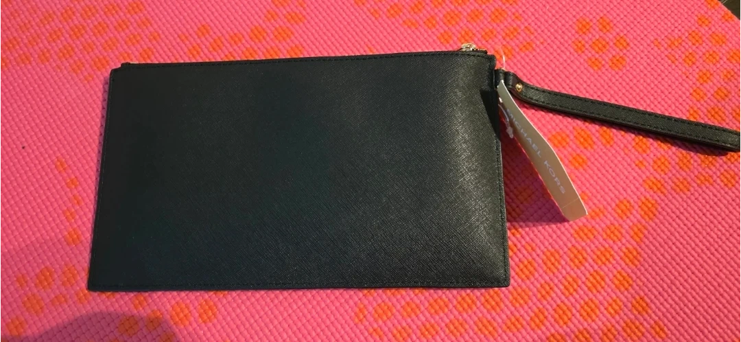 Brand new with tag, stylish black clutch leather wristlet from Michael Kors. It's crafted with a chevron pattern featuring mixed textures. Includes interior pockets for organization. Measurements in pictures.