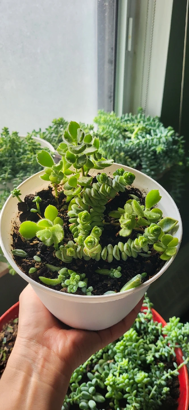 Also have few Burro's Tail leaf in the pot. Hence buy one and you get 4 type of succulents.