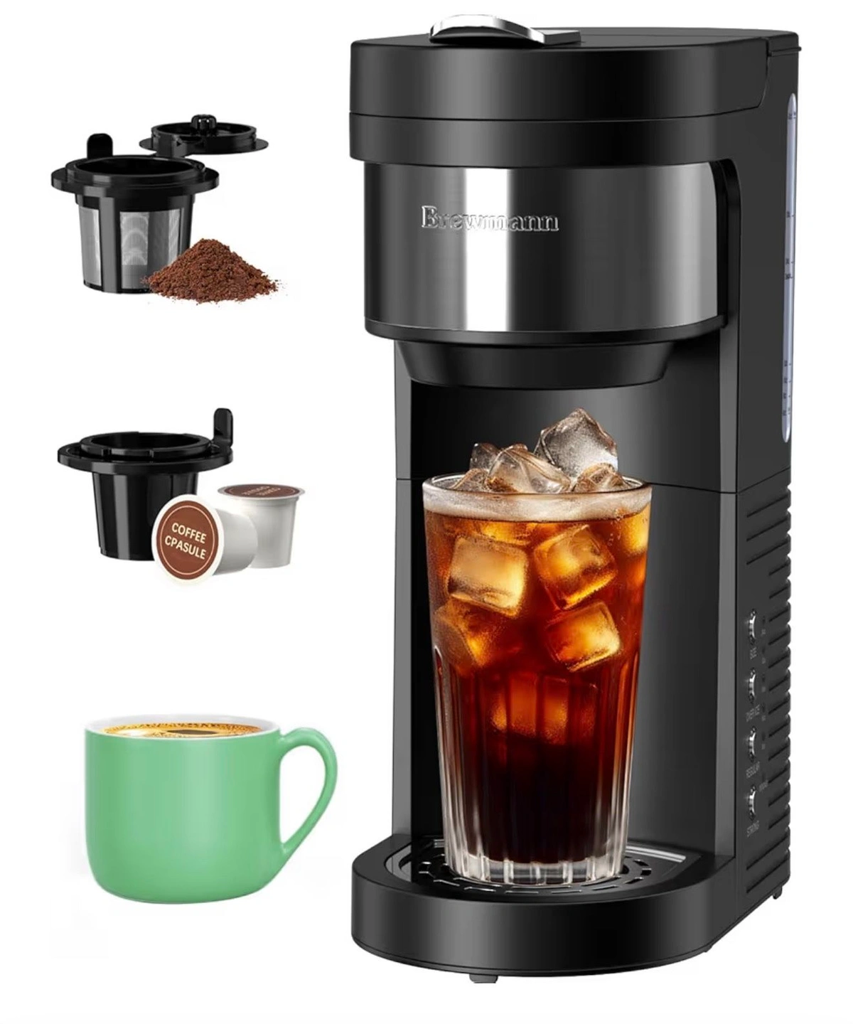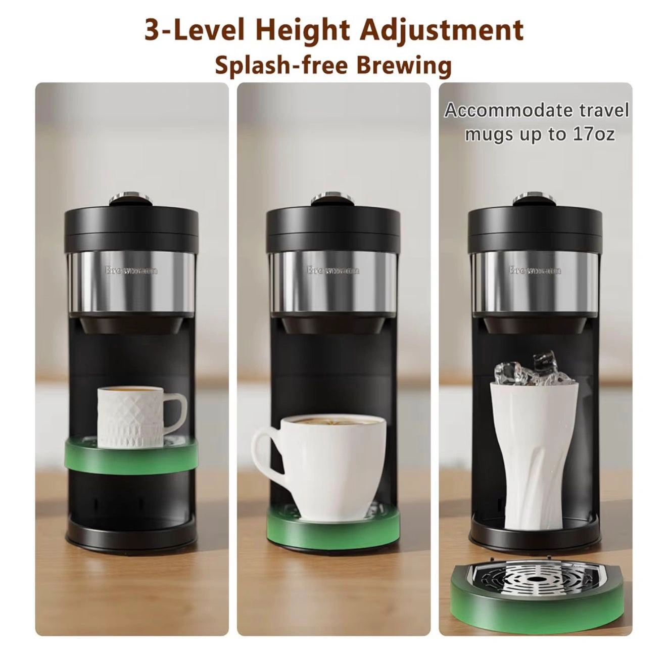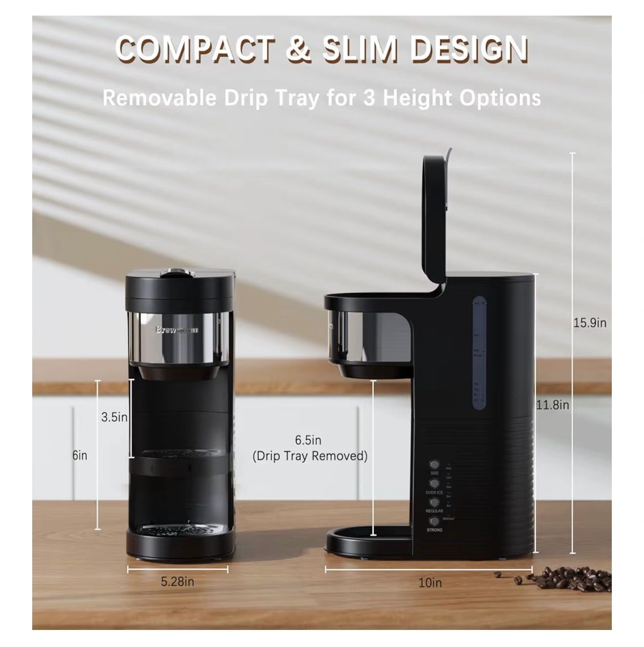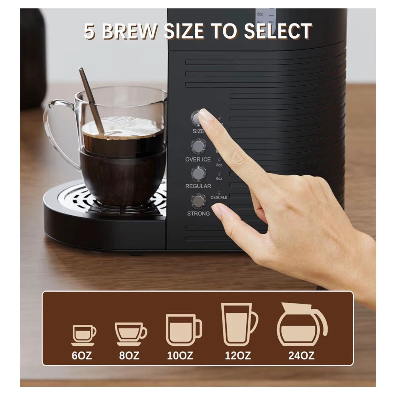 Single Serve Hot & Iced Coffee Maker, for K Cup Pod and Grounds, 6 to 24oz Brew Size, Slim Compact for Small Spaces, Descaling Reminder, with Reusable Filters, Black. Feel free to message if you have any questions!