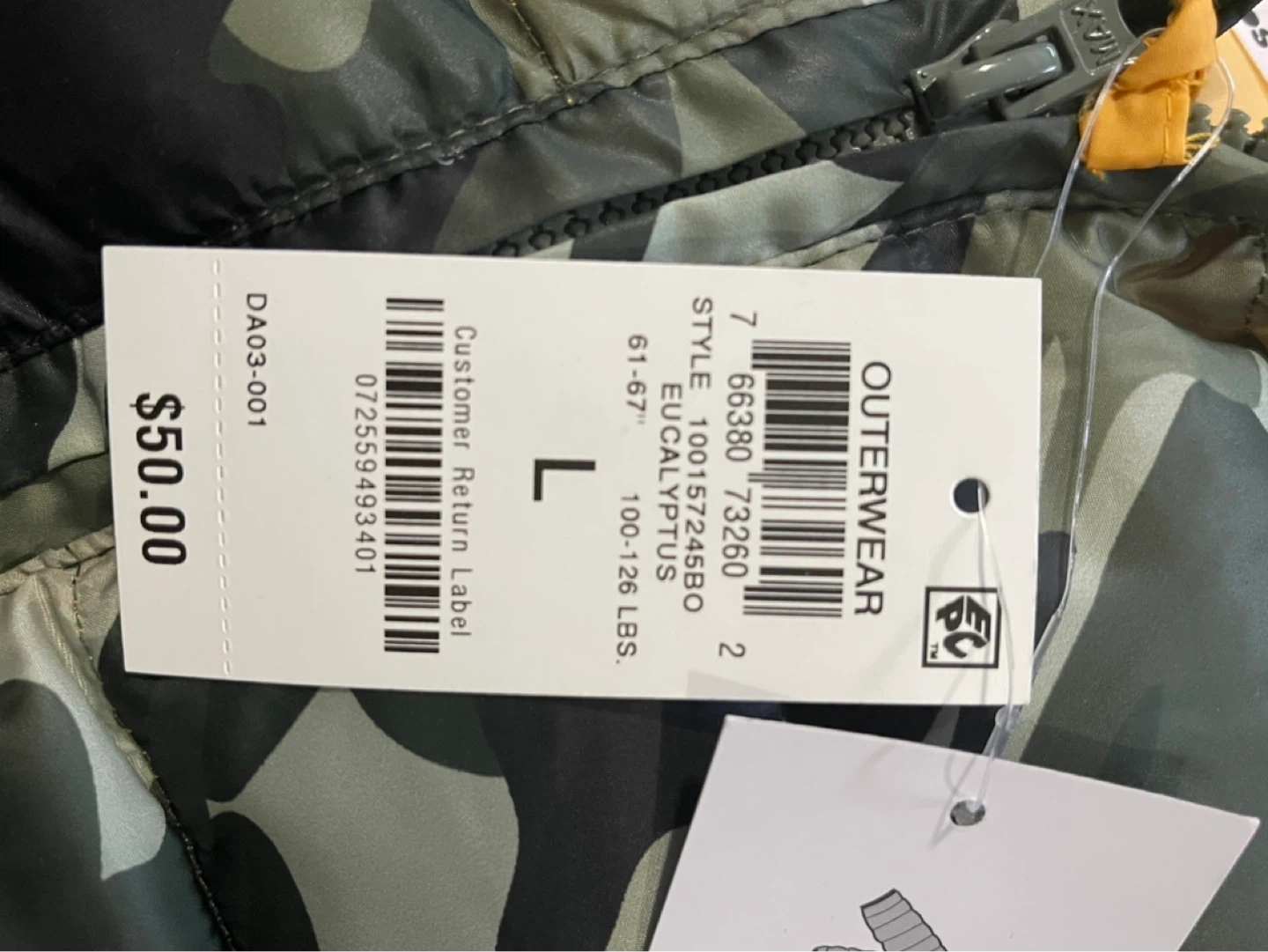Epic Threads Camouflage Puffer Jacket - Size L