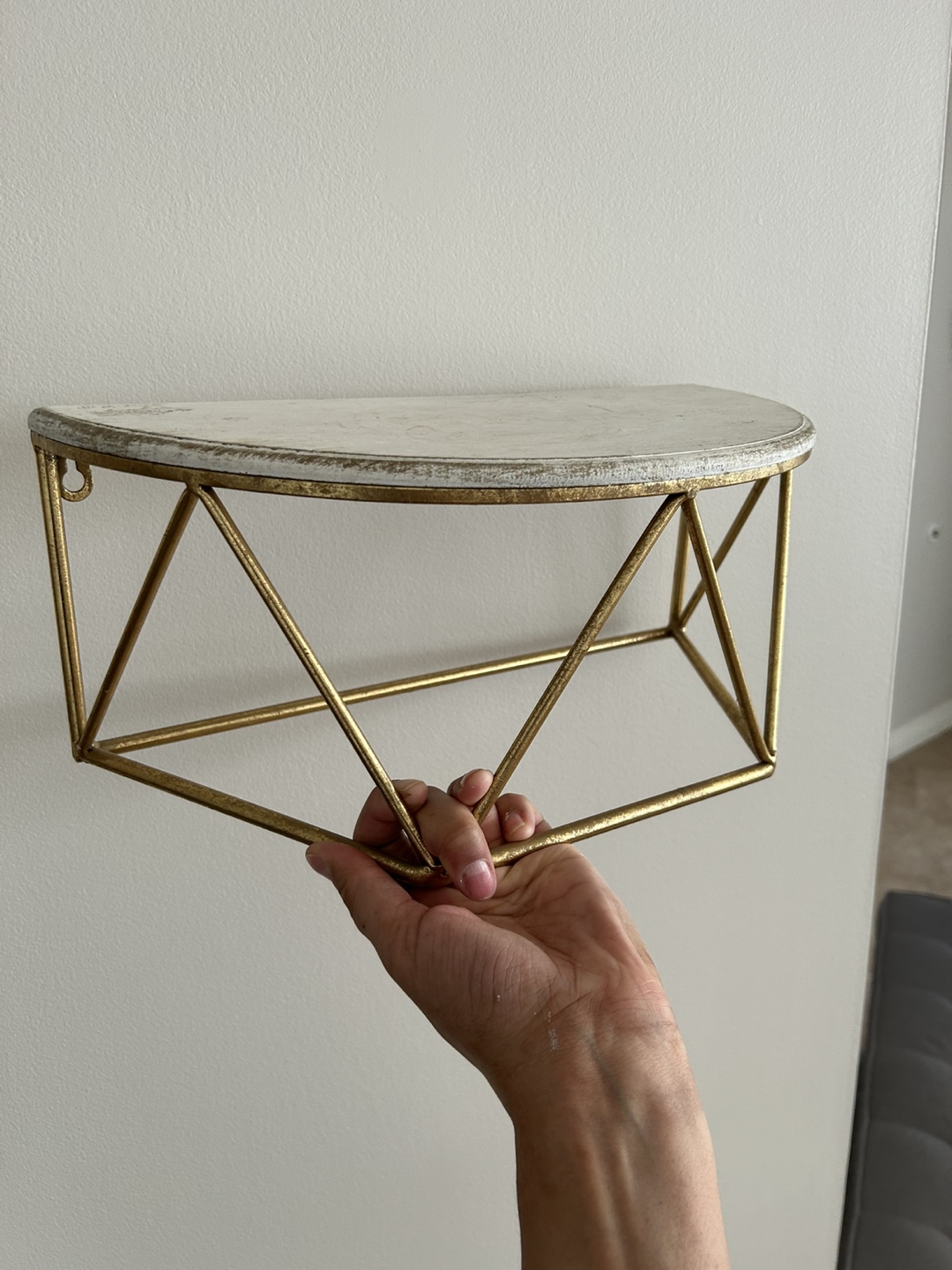 1 / 11 / 1Buy & SellGold Geometric Wall ShelfGold Geometric Wall Shelf$8Small half-moon shaped wall shelf. Whitewashed wood top and gold metal frame. Perfect for small spaces.ConditionOkayDimensions16” W, 8” D, 6.5 H WHERE TO MEET123 Hidden Crescent NWView MapSELLERverifiedLeahNorthwest Calgary18613 reviews2 chats·7 favorites·217 viewsSEND CHAT TO SELLERHi Leah! I’m interested in your listing.Hi Leah! I’m interested in your listing.Get the Karrot app to chatSign In to chat