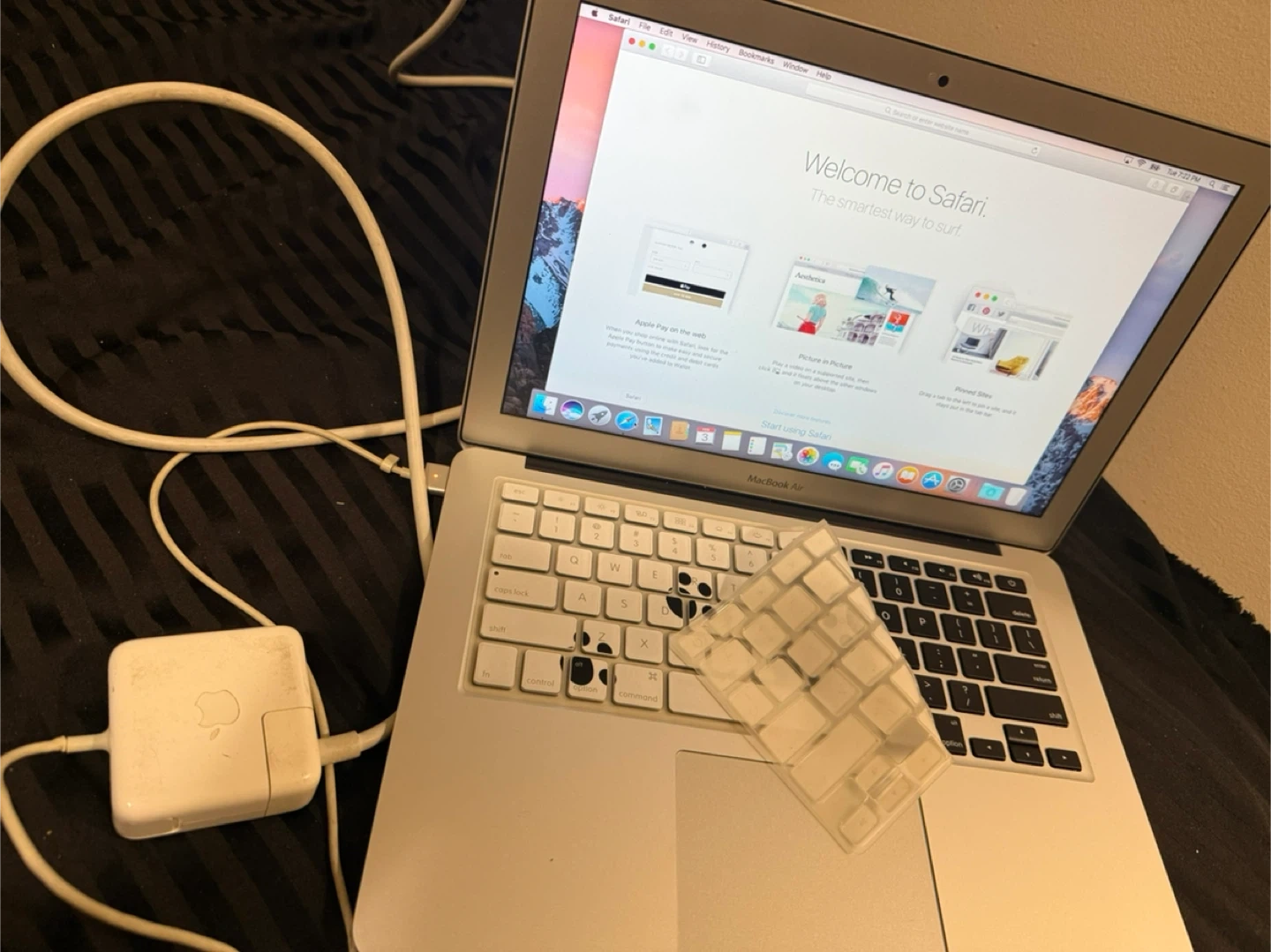 It's a MacBook Air (13-inch, Early 2015). Runs on macOS Sierra 10.12.6. It has Intel HD Graphics 6000 1536 MB. Comes with a charger. This laptop's a good option for everyday tasks.