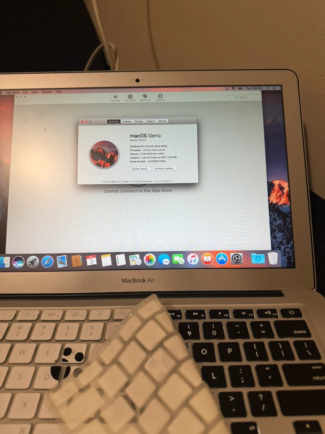 It's a MacBook Air (13-inch, Early 2015). Runs on macOS Sierra 10.12.6. It has Intel HD Graphics 6000 1536 MB. Comes with a charger. This laptop's a good option for everyday tasks.
